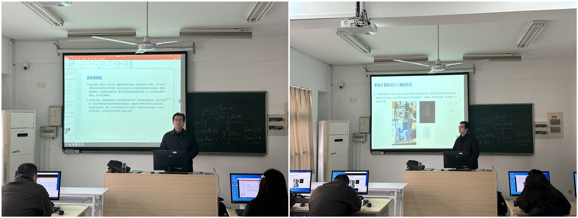 为充分发挥朋辈力量、促进优良学风建设、指引学生规划未来,2月26日上午,电子与信息技术系在6305教室成功举办“学长来了”经验交流分享会暨就业规划讲座。本次活动特邀2023届软件技术专业优秀毕业生徐宇辰主讲。会议由辅导员翁鑫辰主持,2023级40余名学生代表参加。