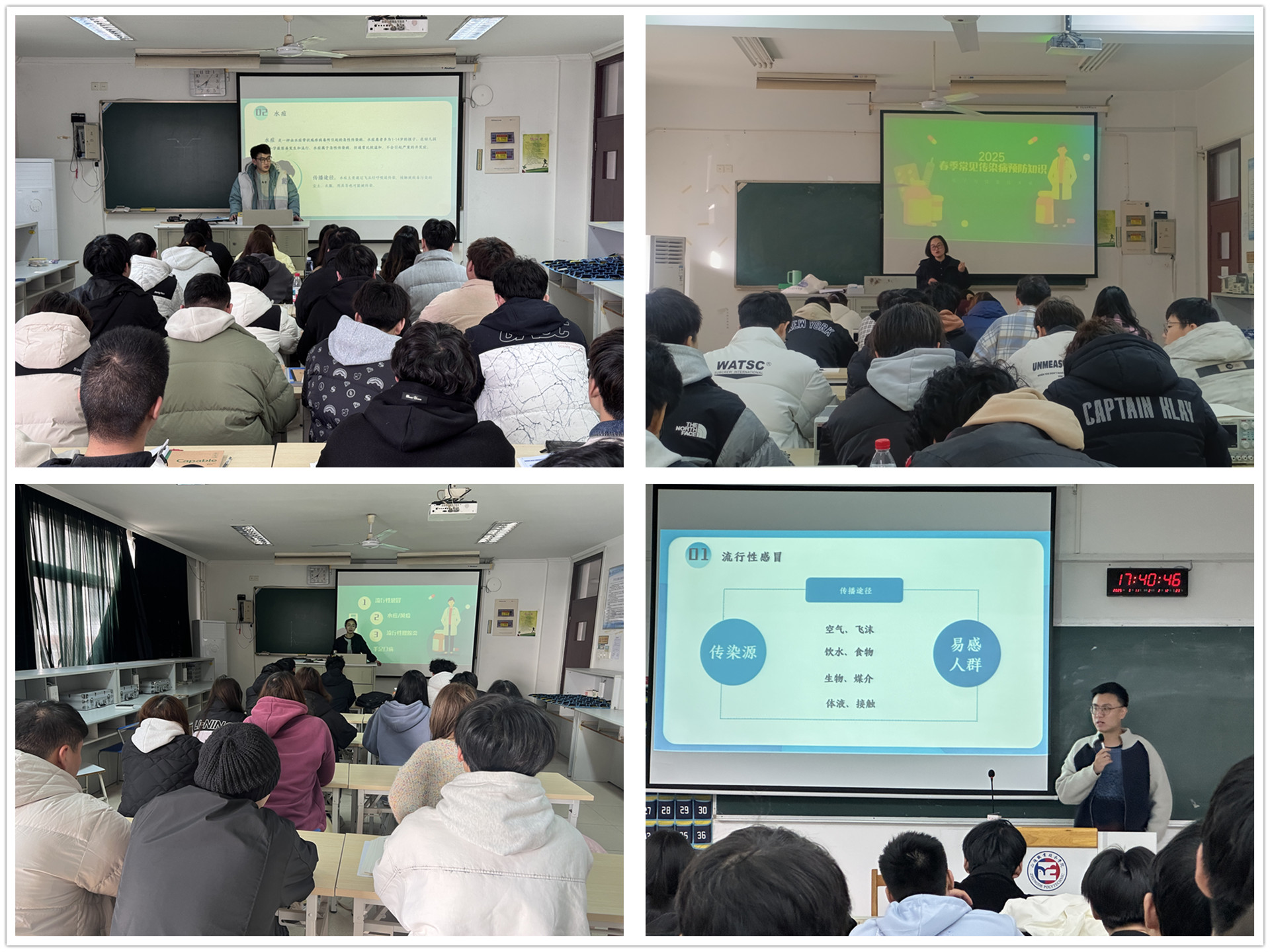 随着气温回升,春季流感、水痘等常见传染病进入高发期,在校学生因密切接触易发生交叉感染,成为高风险群体。为预防传染病传播、保障师生健康,电子与信息技术系近期开展了春季传染病预防知识宣讲活动。2023级、2024级全体同学以及部分教师参与了本次活动。辅导员围绕春季传染病进行了全面、细致的科普。