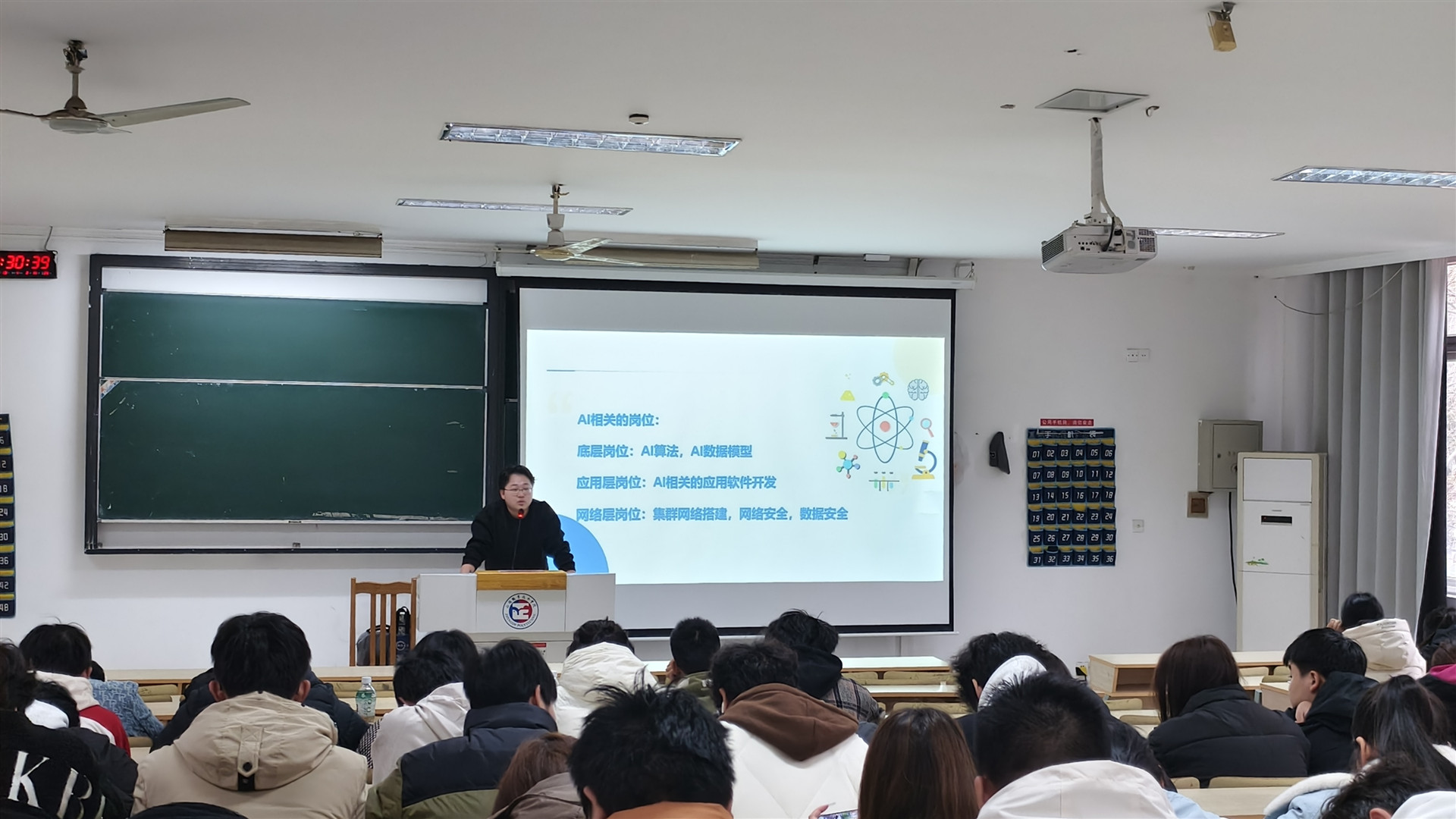 3月13日,电子与信息技术系在教学楼1103举办主题为“DeepSeek与AI行业前景”人工智能素养提升讲座。讲座特邀南京建策科技股份有限公司职业规划师曹辉主讲。计算机网络技术、软件技术100余名学生参加活动。