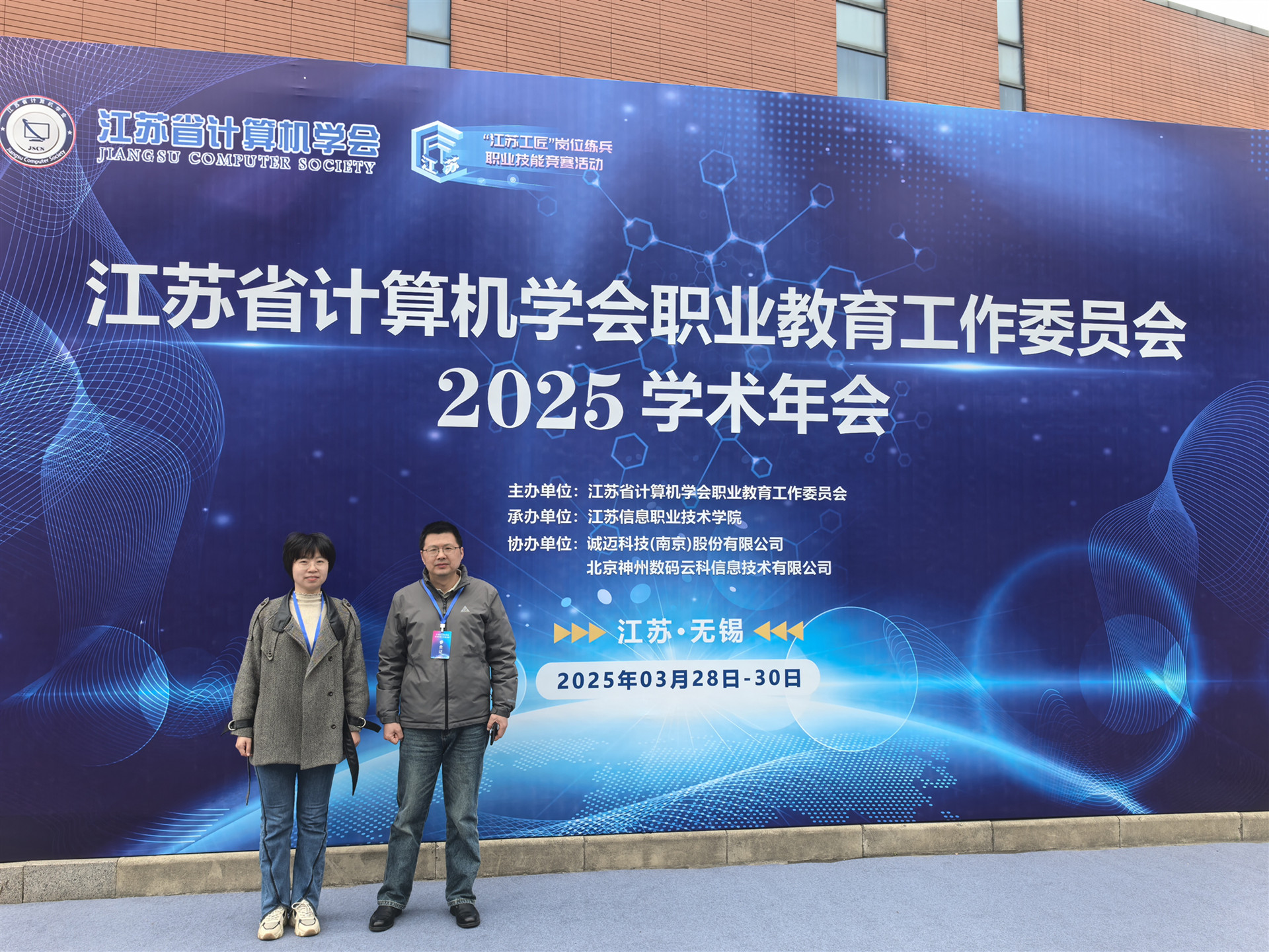 2025年3月28日至30日,江苏省计算机学会职业教育工作委员会2025年年会暨“江苏工匠”岗位练兵职业技能竞赛活动在无锡市江苏信息职业技术学院图书馆多功能厅隆重召开。我院电子与信息技术系专任教师孙俊、李红艳应邀参加了本次会议。