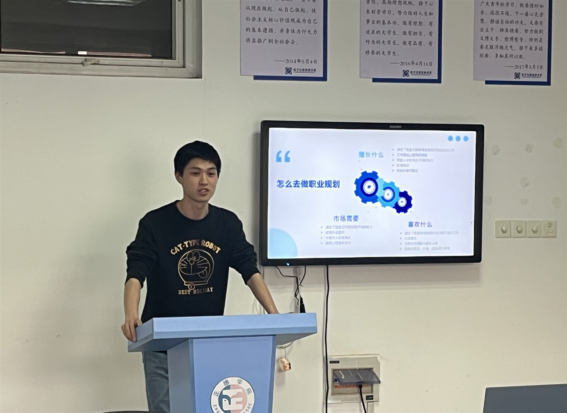 此次以 “学长来了” 主讲人身份重返校园,郑伟泽围绕自身在反诈项目中的实战经验,深入剖析从校园知识积累到职场技术运用的蜕变之路。他详细讲述了主导开发警企协同案件对接系统时所面临的诸多挑战,以及如何凭借坚韧不拔的毅力和精湛技术攻克难题,生动诠释了技术人员在维护社会安宁中的关键作用,也为后续与同学们的深入交流奠定了坚实基础。