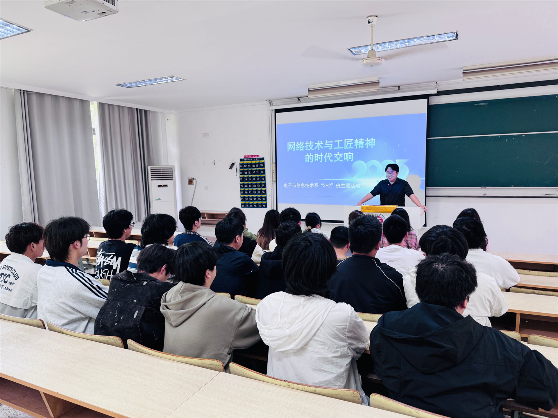 为拓宽学生专业视野,培育工匠精神,2025 年 4 月 17 日,电子与信息技术系特邀南京建策科技股份有限公司科技职业规划讲师曹辉,为电子信息工程技术“3+2”转本贯通班学生带来 “网络技术与工匠精神的时代交响”专题讲座。