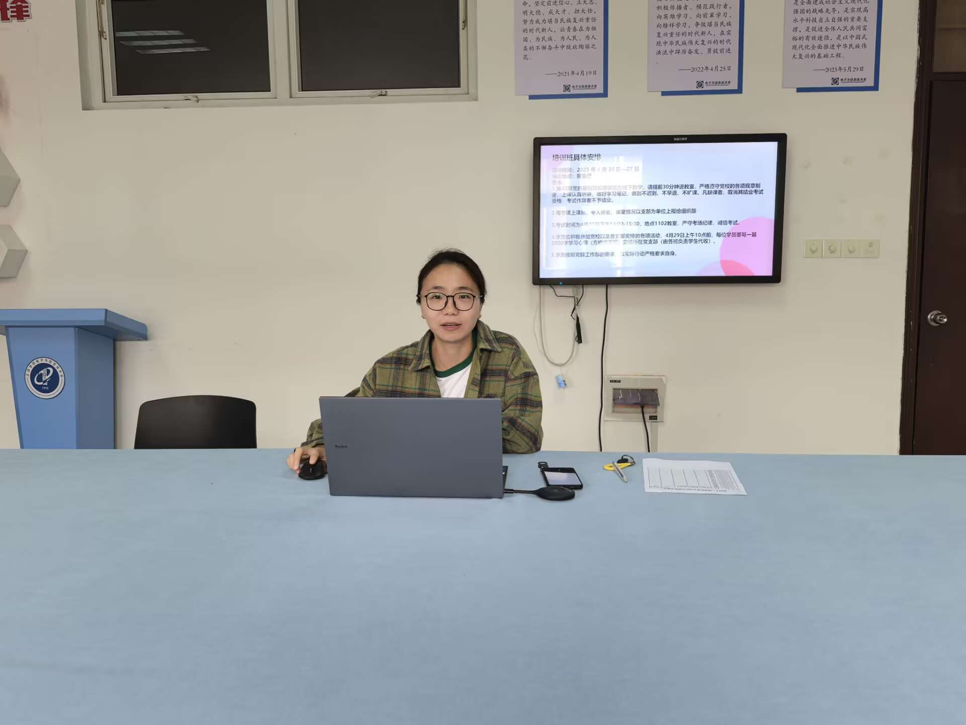 接着,刘敏婧对本期培训班的课程设置和考核要求进行了详细介绍。她明确了培训班的学习内容,并要求全体入党积极分子要严格遵守培训纪律,认真听讲、积极思考,做好笔记,确保学习效果。