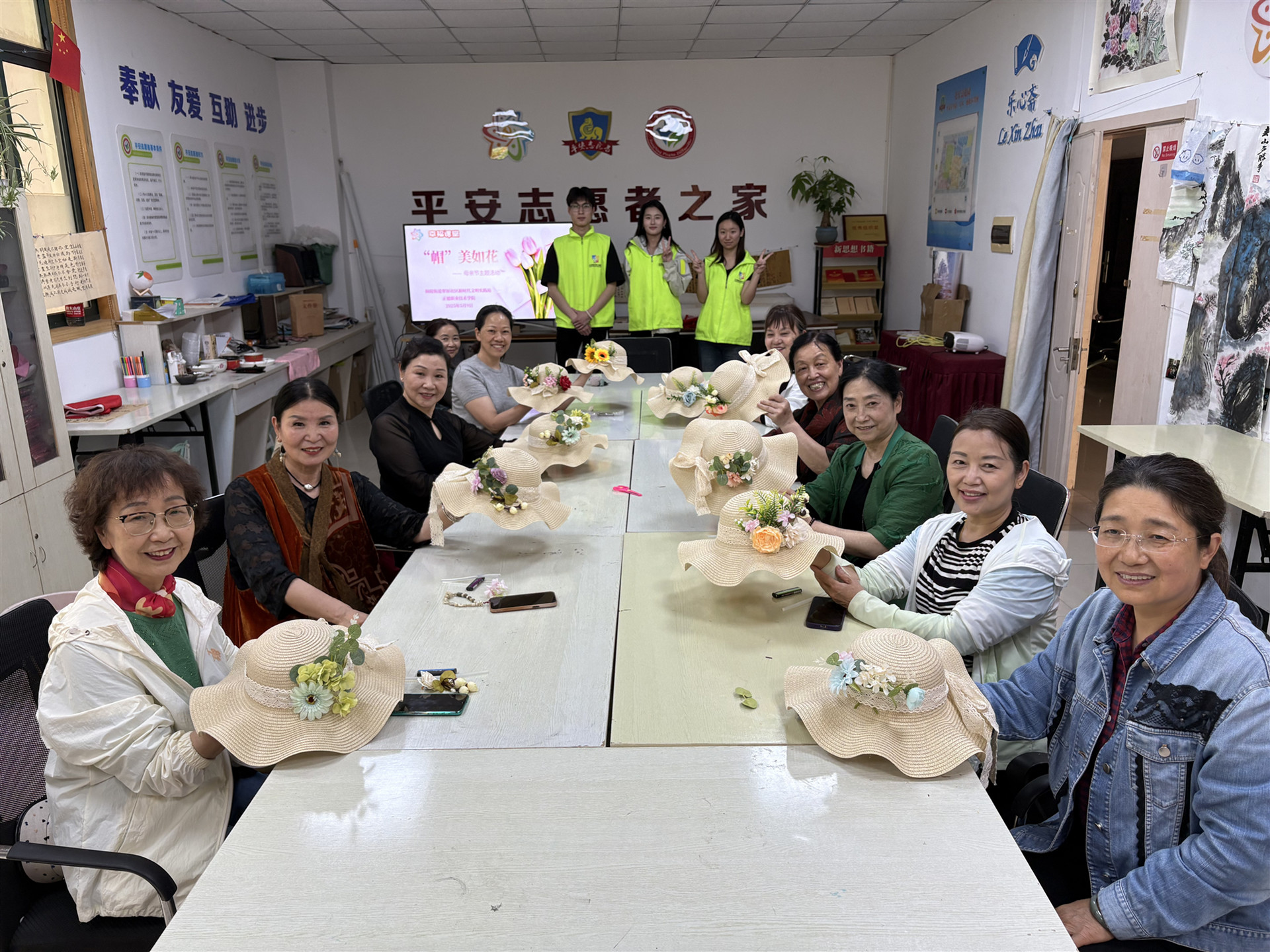 为弘扬中华民族孝亲敬长的传统美德,引导学生感恩母亲、传递亲情,2025年5月9日,电子与信息技术系联合南京秣陵街道翠屏社区,精心组织开展了一场别具意义的“母亲节手工帽制作”美育活动,为社区的退休阿姨们送上了一份特别的节日礼物。