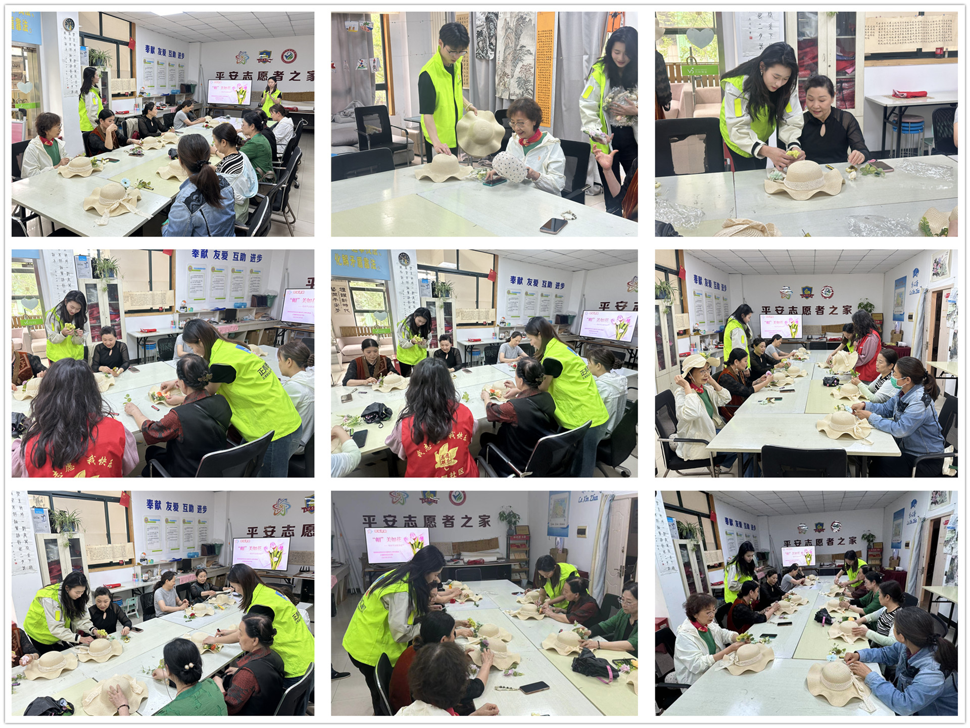 不久之后,一顶顶独具匠心的手工帽在巧手中诞生。阿姨们戴上自己亲手制作的帽子,脸上洋溢着自豪与幸福的笑容,如春日里盛开的花朵,温暖而灿烂。