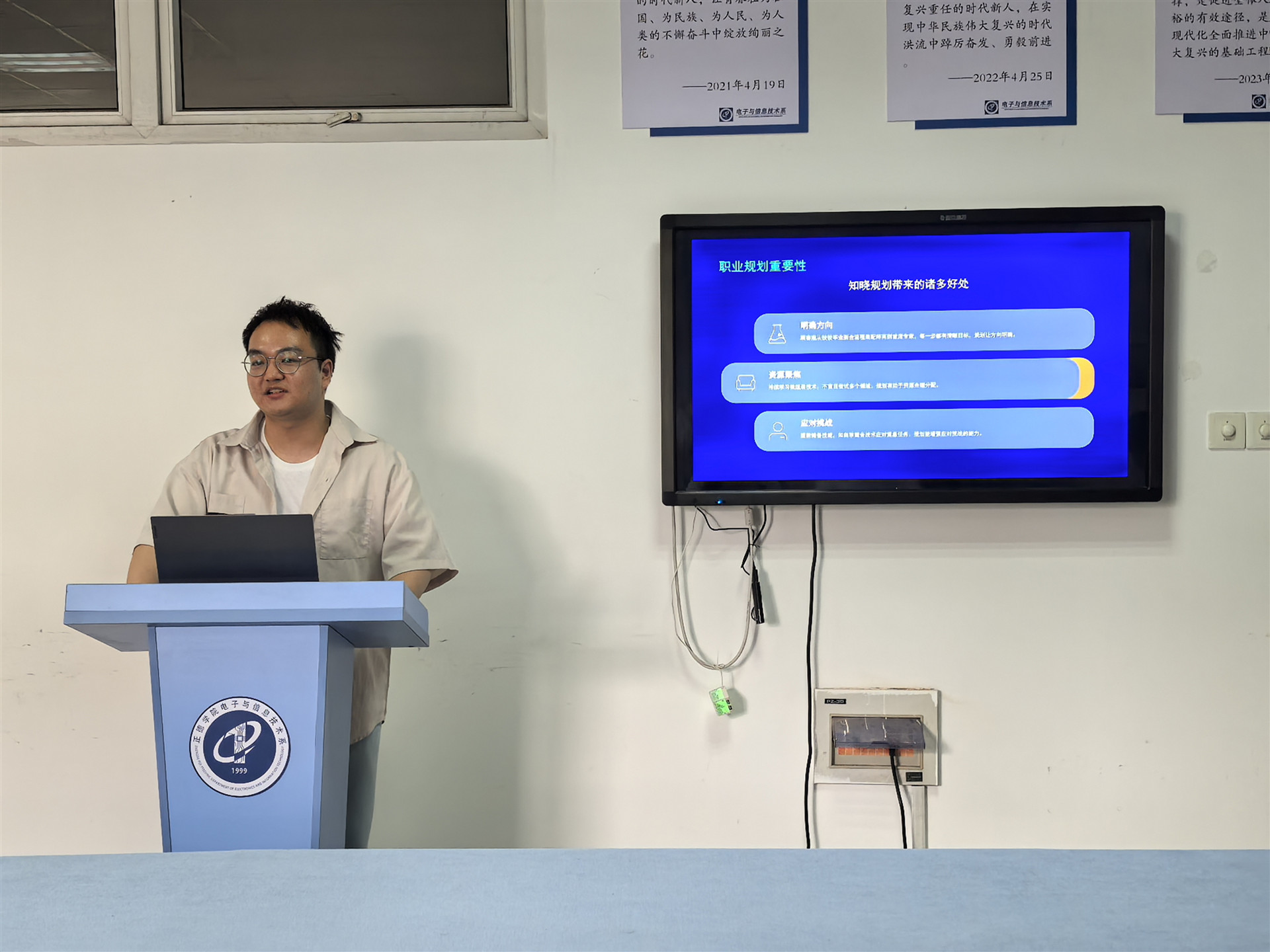 为充分发挥优秀校友的榜样引领作用,帮助 2024 级学生明晰职业发展方向,提升专业实践认知,5月16日,电子与信息技术系举办“学长来了”优秀毕业生成长经验分享会。本次活动特邀2024届优秀毕业生戴立志作为主讲嘉宾,电子与信息技术系党支部书记、副主任赵欣,辅导员李兰香,2024级学生代表参加活动,会议由班主任戴慧主持。