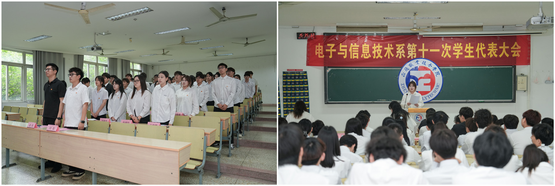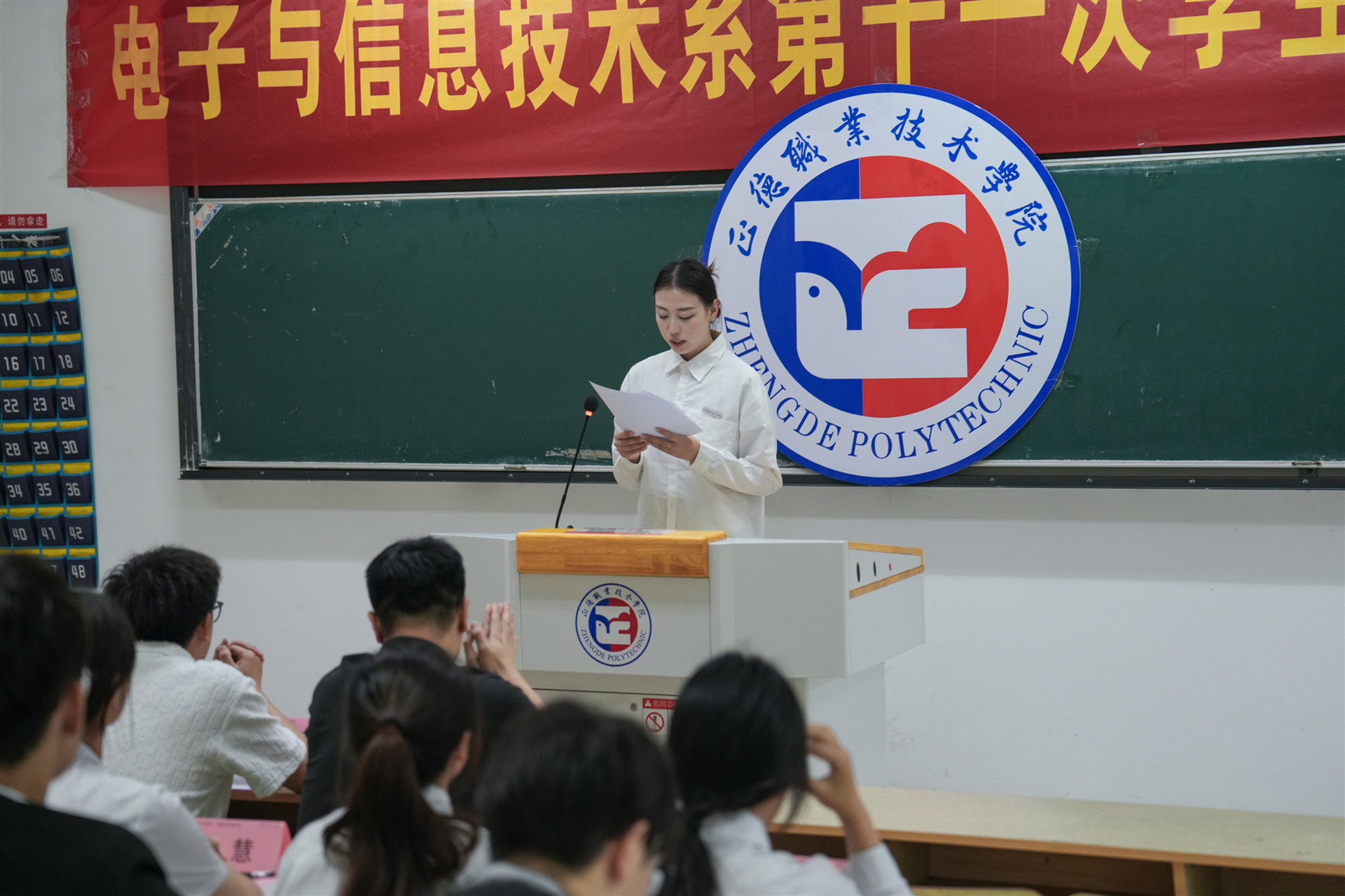 电子与信息技术系党支部书记、副主任赵欣,团总支书记付磊、院学生会主席团成员及兄弟系学生会执行主席应邀出席,与来自全系的学生代表们齐聚一堂,共同见证这一青春与责任交汇的重要时刻。