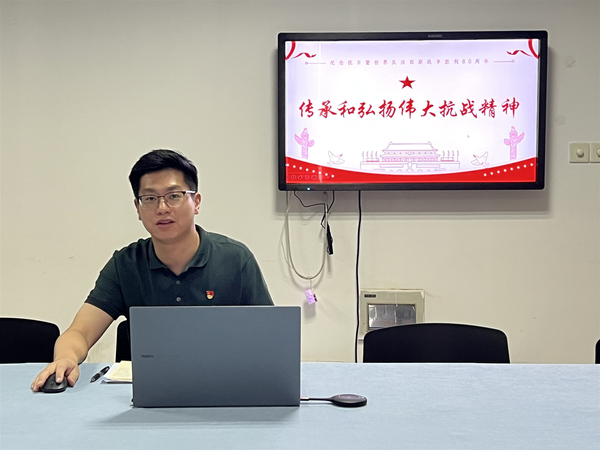 会上,赵欣带领大家一起深入学习习近平总书记在纪念中国人民抗日战争暨世界反法西斯战争胜利80周年大会上的讲话,并给支部党员上了一堂《传承和弘扬伟大抗战精神》的微党课,赵欣指出,在新征程上传承和弘扬伟大抗战精神,就要保持战略定力,增强必胜信心,把伟大抗战精神化作支部全体党员的奋进动力。