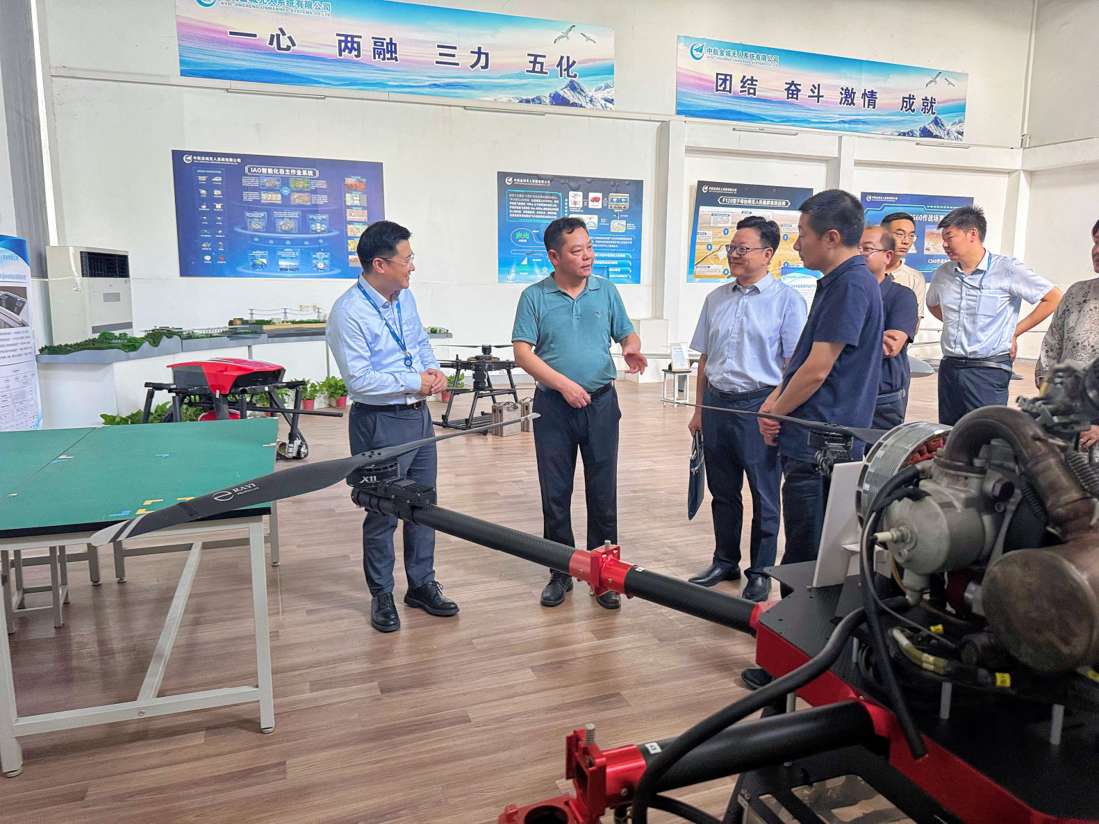 会前,孙永荣一行还在田爱军的陪同下,参观了中航金城集团的无人机展厅。