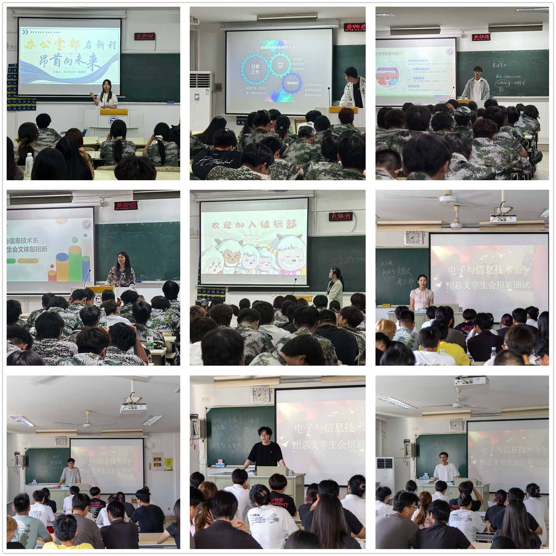 新学期伊始,电子与信息技术系迎来朝气蓬勃的2025级新生。为搭建新生才干施展平台,为系团总支、学生会注入鲜活力量,9月26日晚,电子与信息技术于2号教学楼2404教室正式开展团总支、学生会招新工作,拉开新生服务与组织建设的序幕。