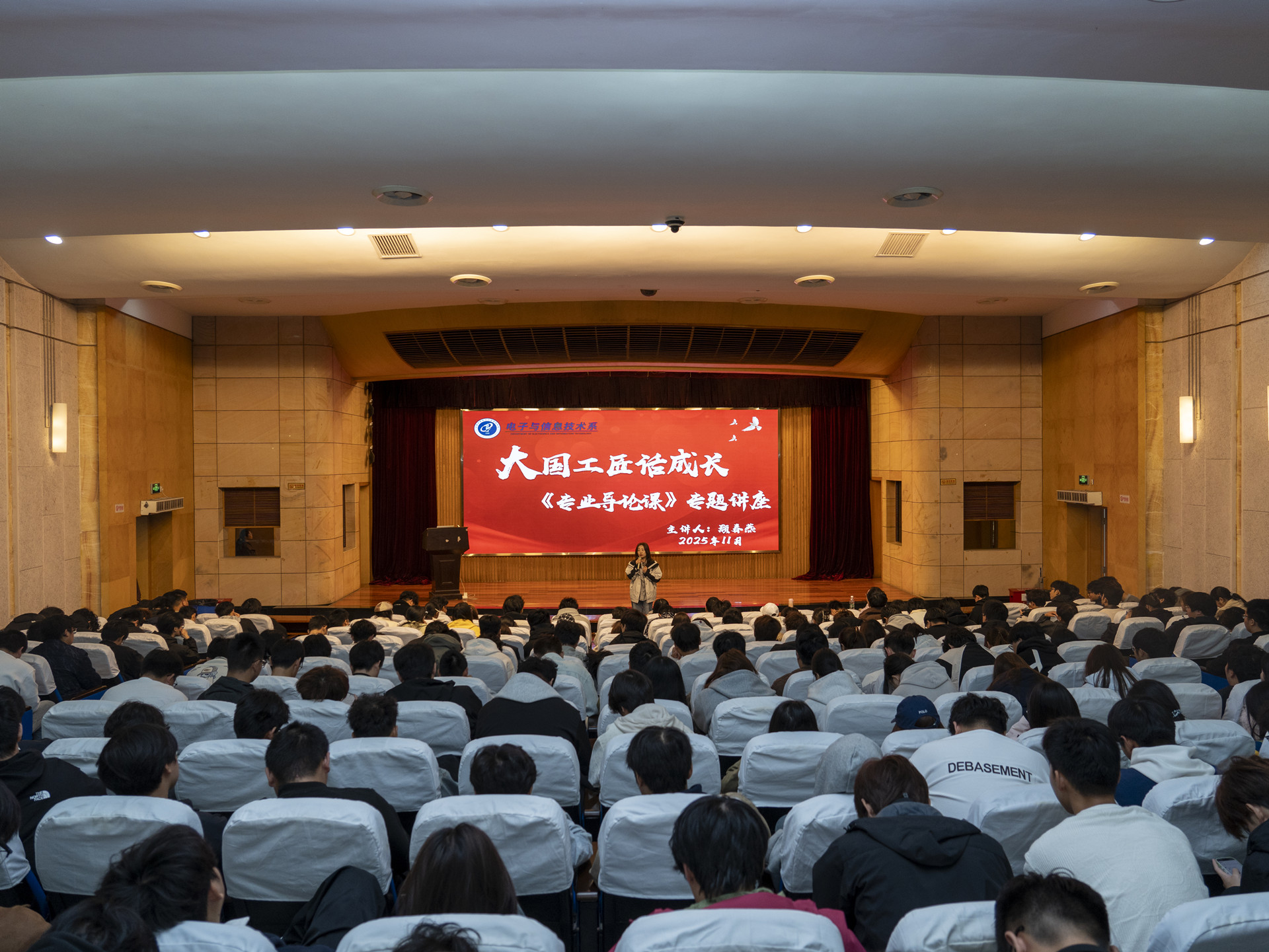 戴慧主持了本次活动。在开场致辞中,她表示,作为《专业导论课》的实践延伸,本次讲座以“大国工匠进校园”为载体,通过行业标杆的亲身经历,帮助新生直观理解专业价值与职业发展方向。