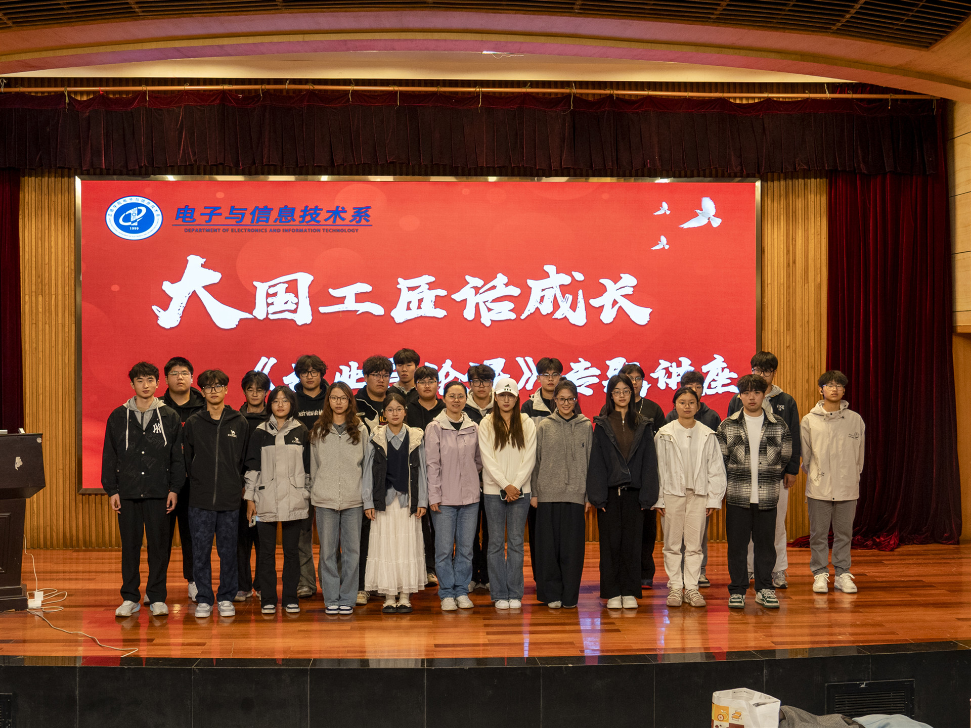 为进一步弘扬劳模精神、劳动精神、工匠精神,引导学生树立专业志向、明晰成长路径,11月8日上午,学院特邀中国电子科技集团公司第十四研究所雷达收发组建总装师、江苏省产业教授、我院思政导师、优秀校友顾春燕开展大国工匠进校园主题宣讲暨专业导论课程讲座活动。党群工作部部长祖国、电子与信息技术系主任刘佳、电子信息工程技术专业负责人戴慧、辅导员王雯及电子信息工程技术专业全体班主任出席活动,与267名新生共同聆听工匠故事、感悟职业精神,为新生专业成长注入“匠心”力量。