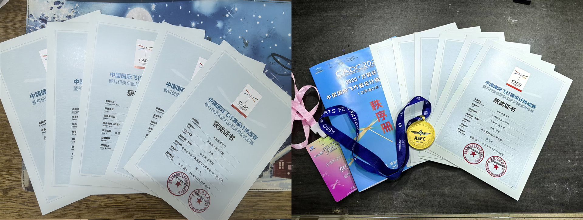 捷报未落,佳音再传。在11月27日至30日于南京举行的“中国国际飞行器设计挑战赛暨科研类全国航空航天模型锦标赛”中,我院代表队再创辉煌。在备受瞩目的创新竞赛项目——“遥控纸质固定翼模型飞行器载重(公开组)”比赛中,由袁伟、刘佳老师指导的魏际洋同学,以及由徐宏庆、孙军辉老师指导的吴秀同学,凭借对飞行器结构的深刻理解和精湛的载重飞行技巧,分别荣获一等奖和二等奖。尤为值得一提的是,凭借队员们的整体优异表现,我院代表队一举夺得该项目的团体第一名,充分彰显了我院在该专业领域雄厚的整体实力。此外,周子悦、徐新月两位同学在电动滑翔机项目中也取得了全省第七名的好成绩。