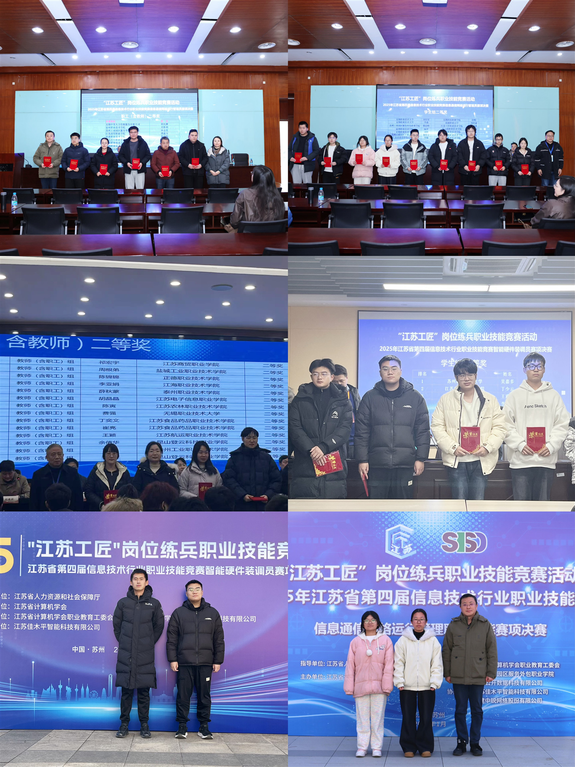 本次大赛由江苏省人力资源和社会保障厅全程指导,属于省级一类竞赛。竞赛分设职工(含教师)组与学生组,均以个人赛形式进行,全面考查选手的理论素养与实际操作能力。此次电子与信息技术系分别有3名教师和3名学生通过南京市选拔赛脱颖而出,进入本届赛事最终决赛。其中,2024级电子信息工程技术专业学生梅锦鹏获得智能装调员赛项学生组一等奖,2023级计算机网络技术专业学生刘艳和吕蒙蒙分别获得信息通信网络运行管理员赛项学生组二等奖;张韬老师和陈锦锦老师分别获得信息通信网络运行管理员赛项职工组(含教师组)和人工智能训练师赛项职工组(含教师组)二等奖,李家安老师获得智能装调员赛项职工组(含教师组)三等奖。