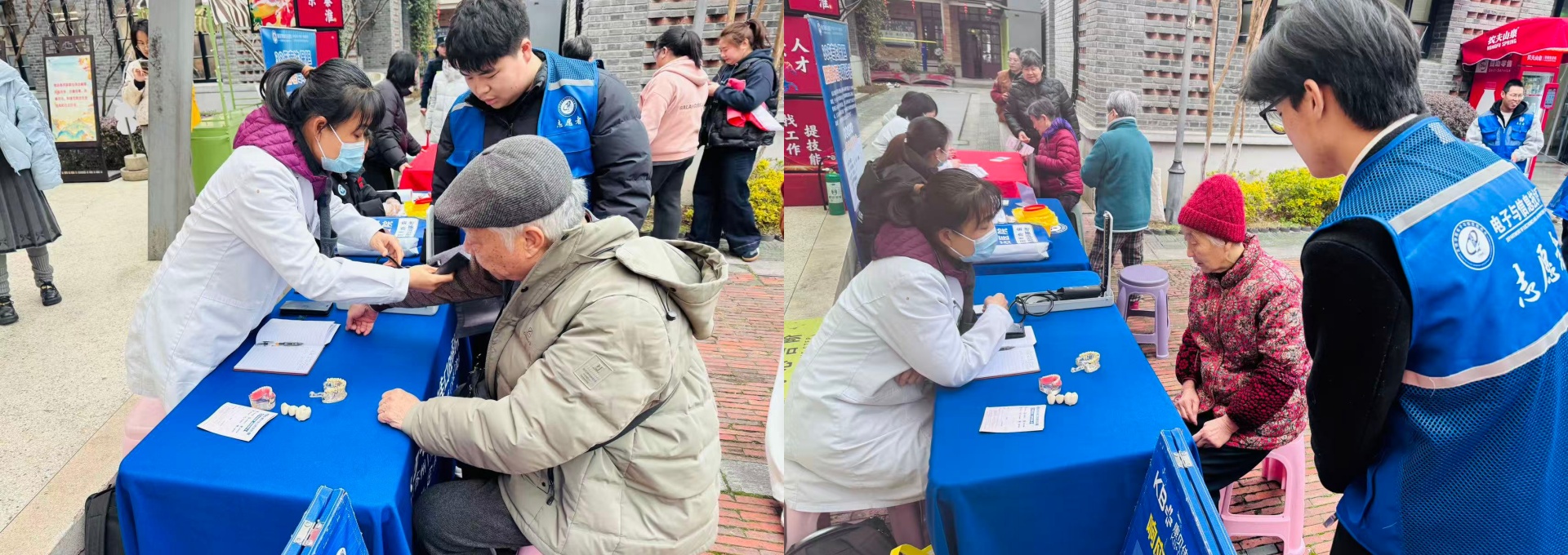 实操环节,医护人员与学生志愿者重点为居民提供测量血压、血糖、健康咨询等服务。志愿者们先耐心询问身体状况与既往病史,再规范操作检测仪器,最后医护人员一对一给出调理建议。“测量时手臂要与心脏同高,放松不要紧张哦!”志愿者细心引导居民做好检测,认真记录健康数据,现场服务有序而暖心。