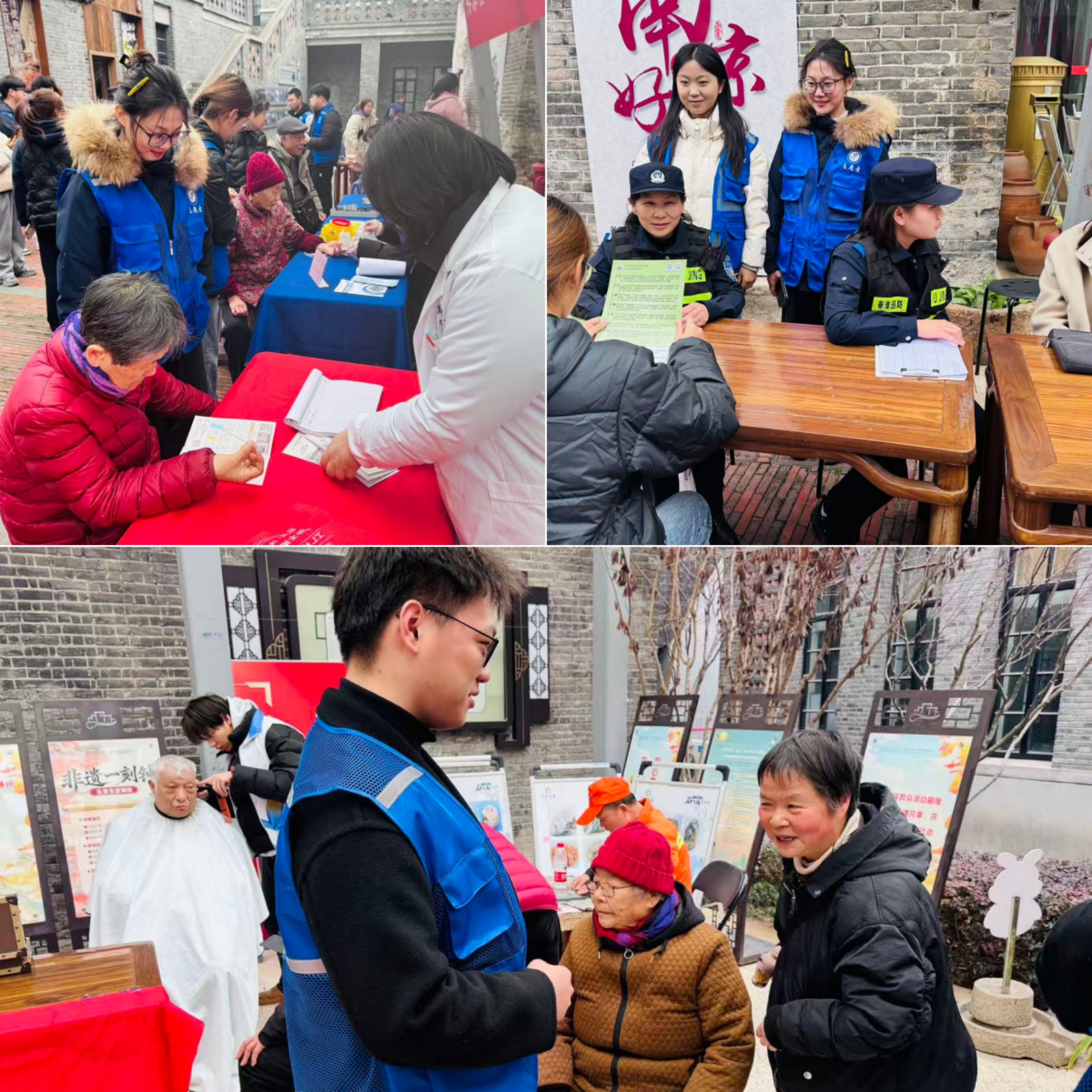 活动伊始,社区民警现场开展安全科普。学生志愿者主动协助民警,向老年居民耐心讲解反诈防骗常识、演示消防栓使用方法,普及居家消防与防诈技巧。同时,志愿者们主动与老人亲切交谈,拉家常、问近况,细心询问日常起居与身体感受,叮嘱他们注意出行安全、防寒保暖,将安全宣传与敬老关怀有机融合,用暖心话语传递关爱。