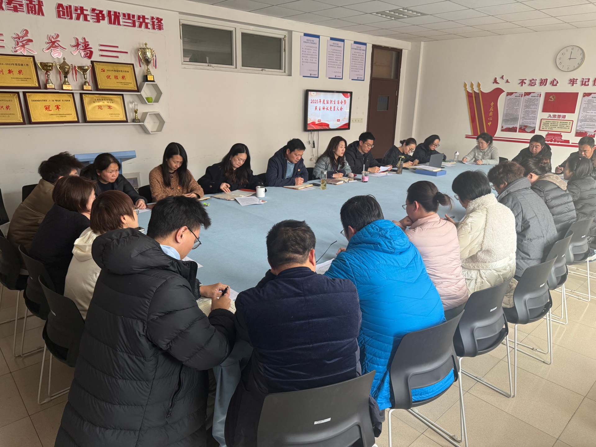 按照学院党委《关于召开2025年度基层党支部组织生活会和开展民主评议党员的通知》要求,2026年3月12日下午,电子与信息技术系党支部召开2025年度组织生活会暨民主评议党员大会。会议由电子与信息技术系党支部书记赵欣主持,支部全体党员以及预备党员参加了此次会议。