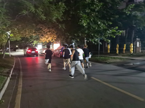 活动伊始,参加活动的同学们依次在学院北门排队,领取荧光棒,按着“KEEP” (自由运动场) APP上的点位开始跑步。