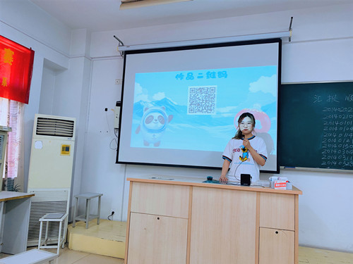 本次数媒交互设计类赛项主题为“2022 年北京 - 张家口冬季奥林匹克运动会与冰雪运动”,参赛对象主要为计算机应用专业的2020级学生。经过前期准备,共收到H5作品106件,经过指导老师常涛和胡雨然的初选,有10件作品入围决赛。决赛现场由10位参赛选手上台汇报,展示作品二维码,并介绍设计过程与创意思路。参赛选手热情高涨,观众同学也同样洋溢着热情。
