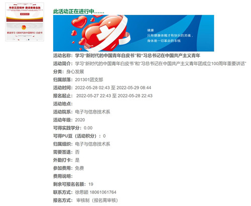 4月21日,国务院新闻办公室发布《新时代的中国青年》白皮书。这部白皮书是新中国历史上第一部专门关于青年的白皮书,客观呈现了党的十八大以来中国青年发展事业取得的巨大成就,勾勒了新时代中国青年的主流群像。系团总支书记何华智在自身学习的基础上带领团总支、学生会全体成员解读了《新时代的中国青年》白皮书。随后,电信系学生会开展主题观影活动,为同学们带来了红色影片《建党伟业》。通过观影引领广大青年学子重温经典岁月,进一步继承和弘扬“爱国、进步、民主、科学”的五四精神。