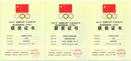 2019年“南通职大杯”江苏省青少年航空模型锦标赛(大学组)部分获奖证书