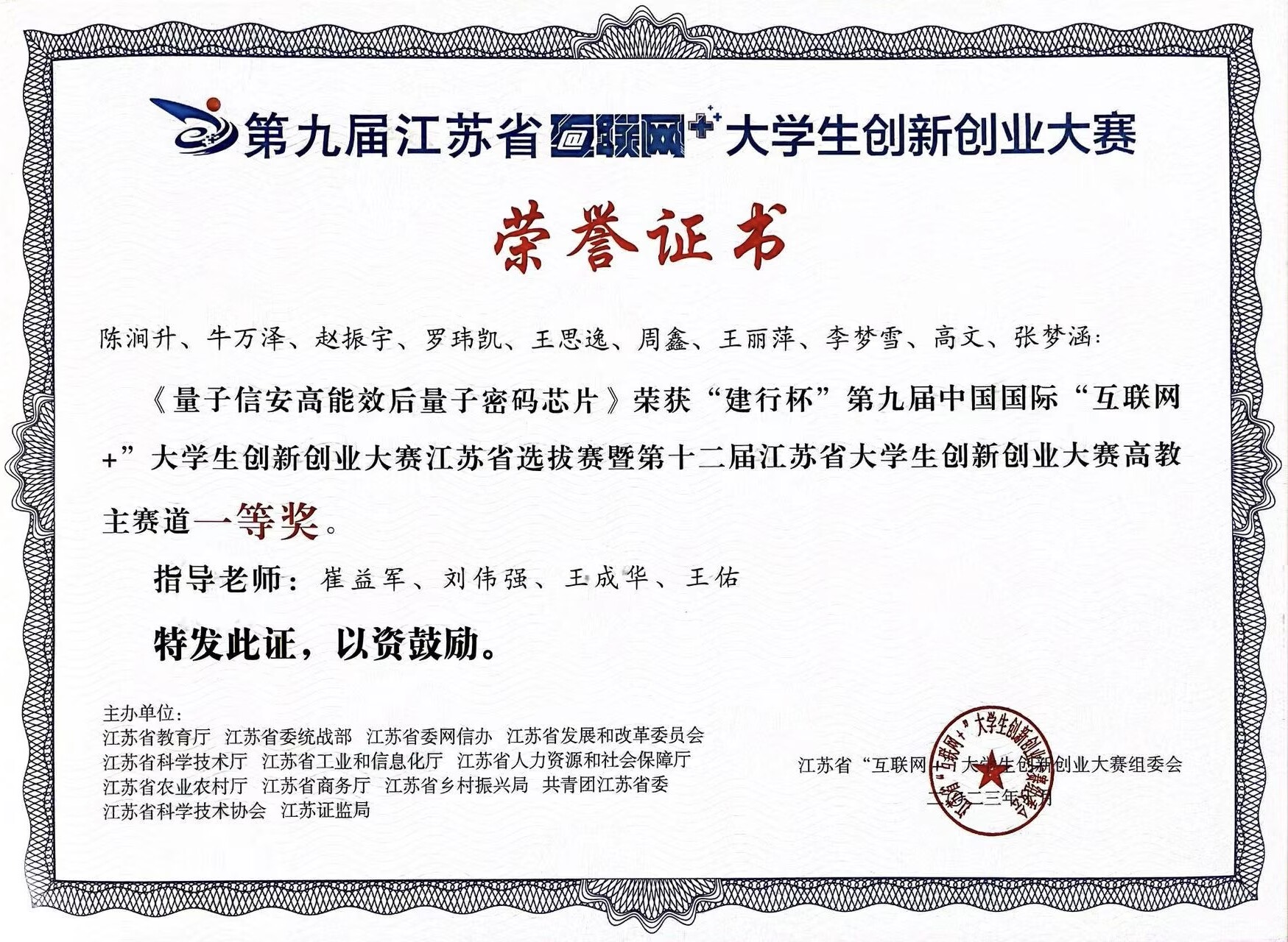 2023年第九届中国国际“互联网+”大学生创新创业大赛江苏省决赛我系高文所在团队荣获高教主赛道创意组一等奖