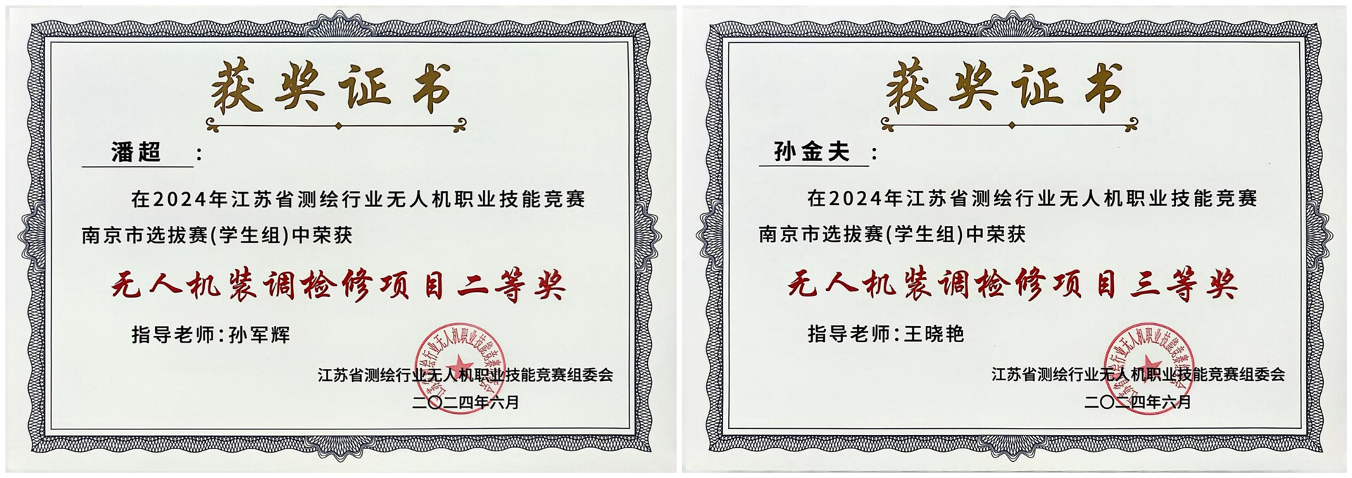 2024年江苏省测绘行业无人机职业技能竞赛南京市选拔赛获奖证书