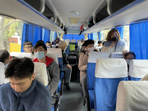 为了确保所有学生能够安全顺利到达实习地点,专业教师刘佳、辅导员谢雅婷、王雯三位老师专程跟车护送实习学生前往中电五十五所。