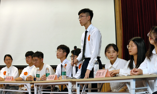 竞赛场上,各代表队18位同学精神饱满,踊跃答题,团队成员间合作紧密,场面紧张而激烈,每一次精彩答题都赢得了评委和观赛同学的热烈掌声,充分展现了同学们扎实的党史知识储备和青春风采,现场观赛的同学也在参赛选手的回答中受到了一次很好的党史学习教育。竞赛的抢答环节首次通过云班课平台的抢答功能进行,参赛选手全神贯注,各队你追我赶,得分交替上升,抢答成功得分的喜悦和回答失误扣分的遗憾相互交织,更增加了比赛的紧张程度。