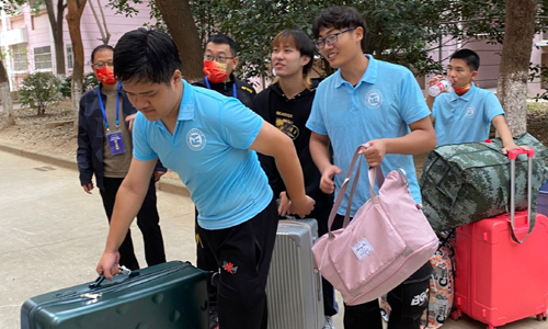 迎新工作组所有老师和学生志愿者们以忙碌的身影、亲切的笑容热情迎接着每一个新生的到来。他们热情接待报告新生,处理相关报到信息,看管并协助新生运输行李。报到组的老师和行李组的老师都坚守岗位,为新同学们作出引导,叮嘱相关注意事项。一位学生动情地说,“老师的眼睛就像妈妈一样,关心的看着我们,回答着我们的问题。”
