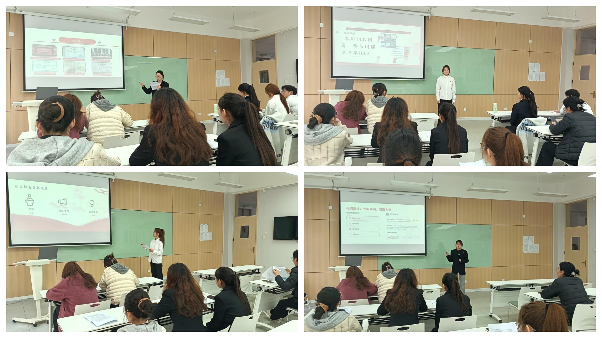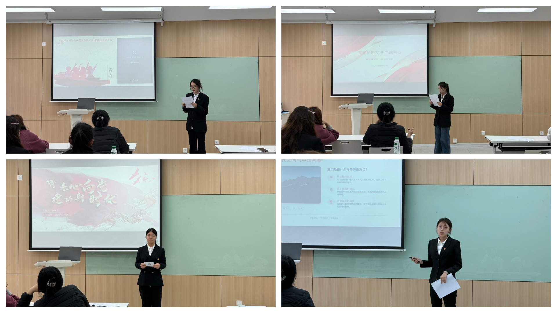 活动伊始,五四红旗团支部竞选答辩会正式拉开帷幕。各参评团支部代表依次登台,围绕支部概况、思想建设、组织管理、特色活动、荣誉成果及未来规划六大维度展开全面汇报。汇报中,各支部以详实数据为支撑,用鲜活案例为载体,全方位展现了支部建设的丰硕成果:常态化开展主题团日活动,筑牢团员青年思想根基;完善班级级制度建设,凝聚集体向心力;积极开展文体实践与志愿服务,彰显新时代青年活力。多个支部斩获院、系级荣誉,充分展现了基层团支部的凝聚力与战斗力。此次答辩会不仅是各支部建设成果的集中展示,更为各支部搭建了互学互鉴、共同提升的优质平台,营造了比学赶超的良好氛围。