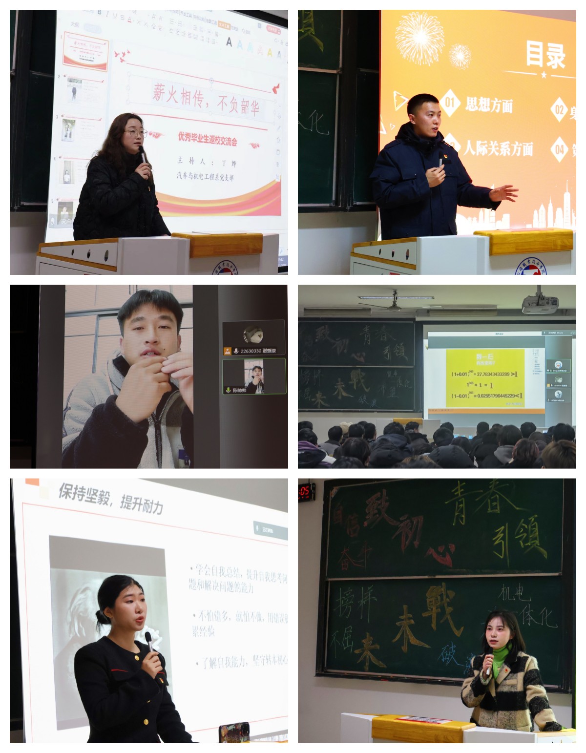 为充分发挥我系优秀毕业生的示范引领作用,引导汽机系学子树立正确的世界观、人生观、价值观,明确人生的努力方向,汽车与机电工程系党支部于2月23日邀请优秀毕业生返校,与学弟学妹们进行了一场线上线下相结合的交流,分享了自己的学习方法和工作经验,畅谈精彩的大学生活。