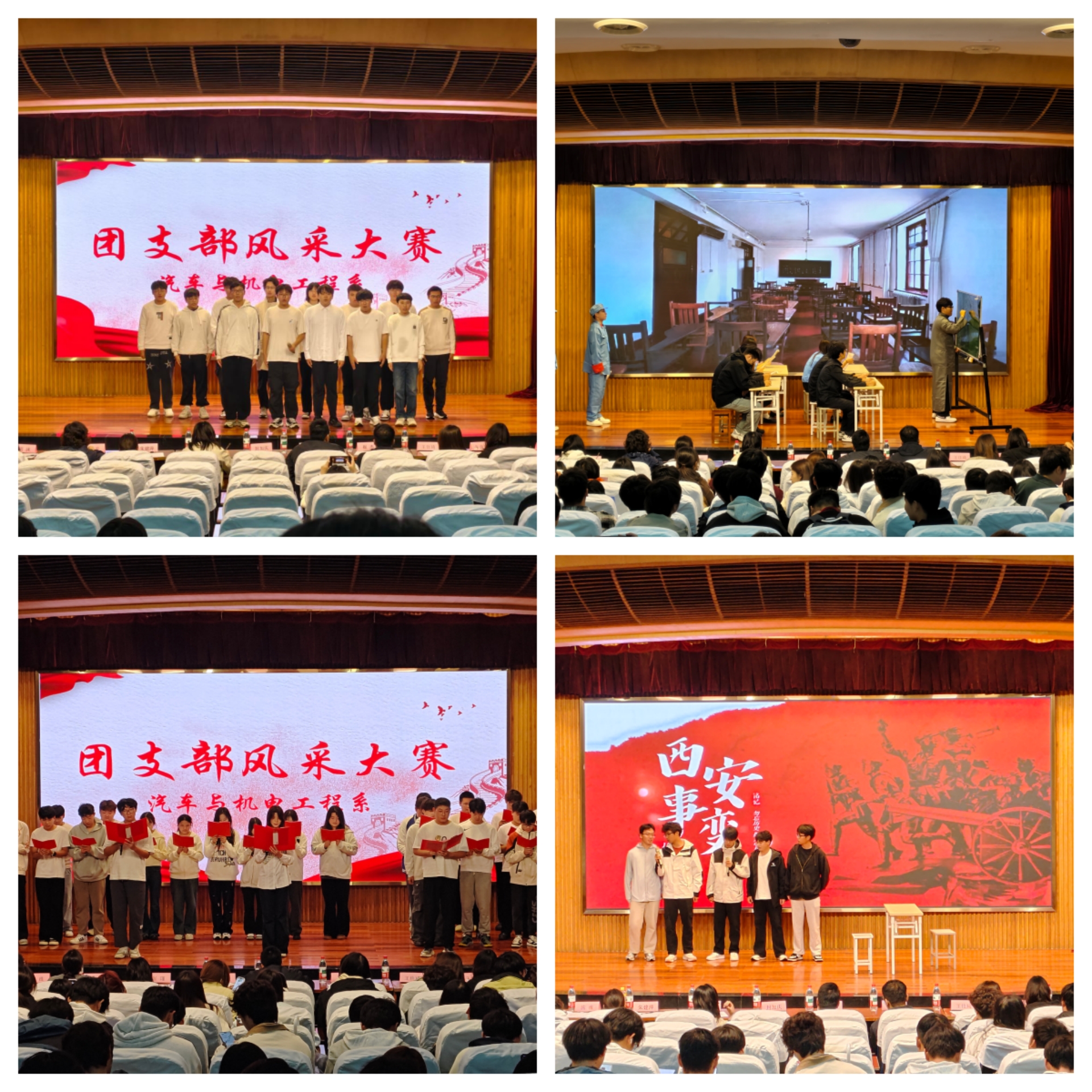 各参赛团支部精心筹备,情景剧演绎、诗歌朗诵等丰富形式,全方位呈现支部建设成果与成员精神风貌。有的团支部以情景剧再现青年投身机电技术攻关、助力产业发展的场景,诠释专业报国的初心;还有的团支部以铿锵有力的朗诵,抒发对祖国发展的由衷自豪与青春报国的坚定决心。多样的表演形式紧扣主题,赢得现场观众阵阵掌声,充分展现出汽车与机电工程系青年学子的创新朝气与蓬勃活力。