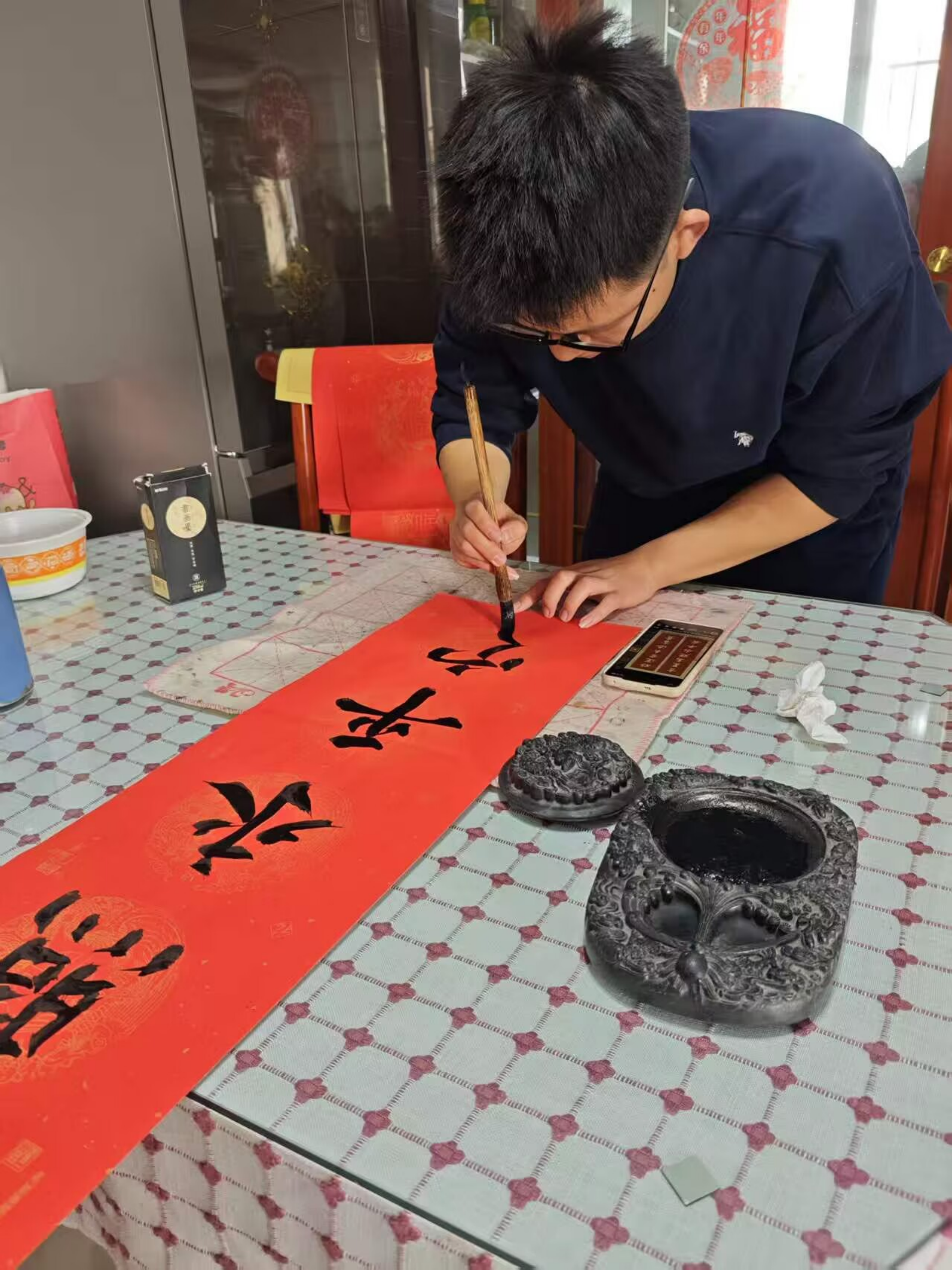 同学们回到家乡,融入社区与乡村。他们与老人小孩齐聚一堂,手中的剪刀飞舞,剪出喜庆灯笼,寓意美好团圆;挥毫泼墨,书写幅幅饱含新春祝福的毛笔字;田间地头,他们又化身小助手,助力老人干农活,不怕脏累。同学们用实际行动,为家乡添彩,传承民俗文化,在这片熟悉的土地上,书写青春奉献篇章,尽显青年担当。