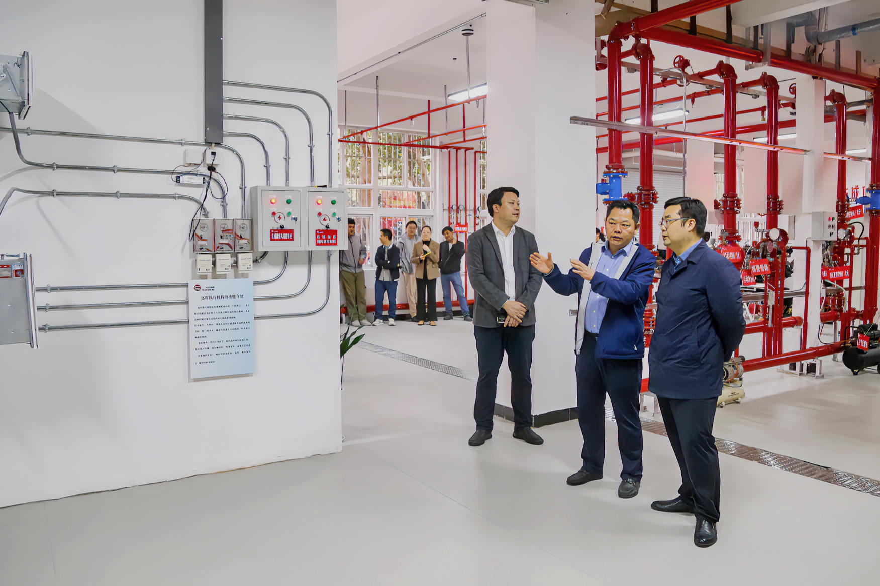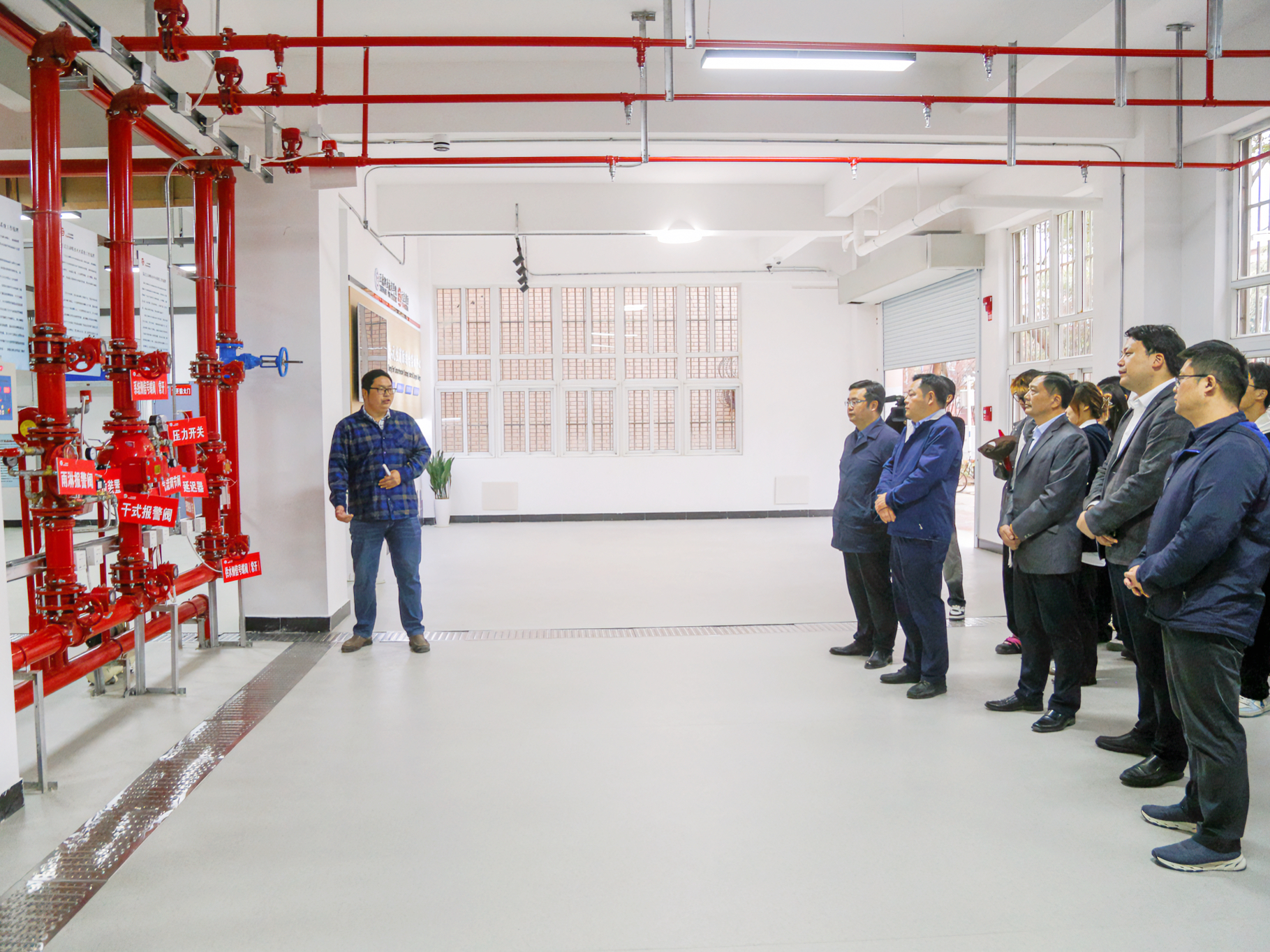 与会领导、嘉宾、师生一起参观了正德-元生消防综合实训中心。该中心占地面积约400平方米,配备了消防设施设备100余套,涵盖消防电系统、消防水系统、消防风系统,符合国家消防专业实操考核的设施要求,集理论教学、实践实训、培训演练、示范展示为一体,有望成为南京市中小学生消防安全教育实践基地。