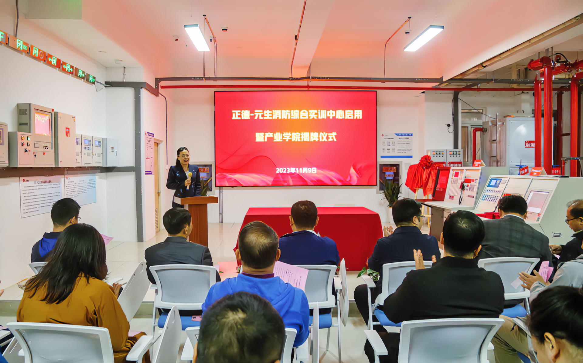 正德-元生消防综合实训中心启用暨产业学院揭牌标志着我院“产教一体、校企一体”育人模式的成功实践,后期校企双方将在建筑消防专业建设、人才培养、技术研发、技能竞赛等方面开展深度合作,为建筑消防行业输送高素质管理人才。