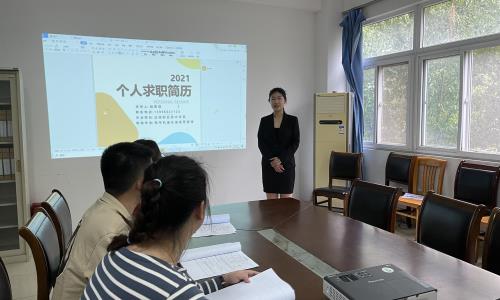 模拟面试严格按照正规公司面试的形式进行,全真的面试现场让学生们很快进入状态,达到了考察的效果和目的。选手们沉着冷静,语言得体,从容地向面试官讲解着自己的简历。