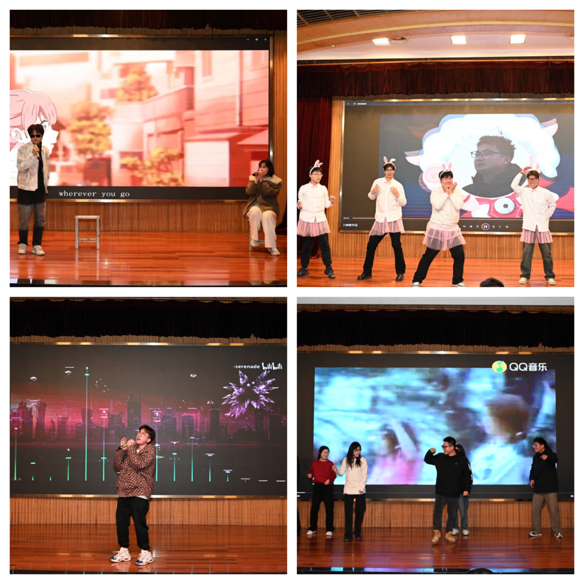 本次晚会的节目“百花齐放”,既有独具创意的舞蹈、歌曲,又有富有教育意义的相声,其中还包含了神秘节目和趣味活动,展现了同学们在艺术方面的多重才华。晚会开场便迎来了舞蹈类节目的亮相。双人舞、独舞相继上场,街舞和民族舞的结合,为晚会增添了不少活力。随后便是独唱、合唱、歌伴舞等让人目不暇接。在此让人惊喜的是由后勤保卫处处长陈宏波和团委副魏兴彪献唱歌曲的《海阔天空》,它讲述了坚守理想的故事,传递出积极向上的力量,为晚会增添了几分温暖与感动。汽车与机电工程系党支部书记、副主任朱翔为大家献唱的《你是我的眼》更是让人眼前一亮,不经意间拉近了于同学们的距离。相声《辞旧迎新》通过幽默风趣的情节,展示了同学们在日常学习中的状态,提醒同学们新的一年要再接再厉,对学习要富有激情,展现了正能量与校园和谐的氛围,带给同学们深刻的思考与共鸣。演员们与观众的互动更让整场晚会的气氛迅速升温,赢得了观众们的热烈掌声。其中最让人惊喜的是师生互动环节,通过撒糖、投壶和充满青春活力的神秘活动,不仅增进了师生之间的互动与默契,更展现出风趣、幽默的画风,拉近了师生之间的距离,也让晚会充满了快乐与温馨。今朝此地,歌声悠扬,身姿舞动。每一个节目都是同学们用心血与汗水浇灌的果实,每一个瞬间都将成为他们成长道路上宝贵的回忆。随着一个个节目的推进,台下掌声雷动,欢呼声不断,大家都沉浸在精彩的节目之中。晚会最后,系学生会全体成员一起表演了节目《我的未来式》,寓意同学们在新的一年,在追梦的道路上勇往直前,迎接更灿烂的未来。