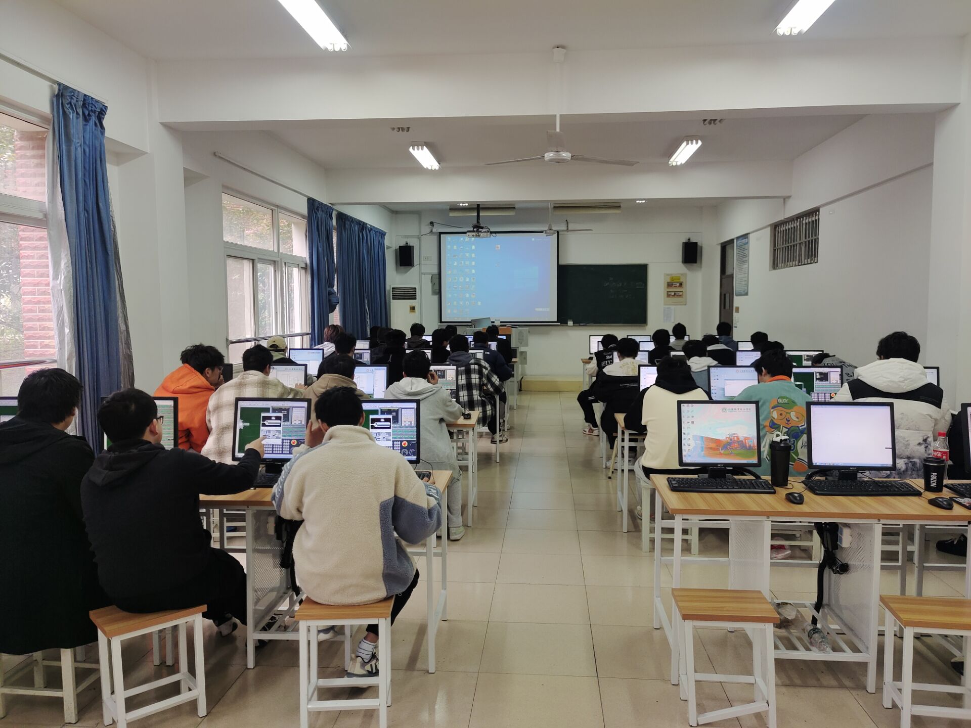 CAD/CAM实训室I配有四十台PC机、一台服务器、一台A3幅面激光打印机、两台24口交换机,安装有宇航数控仿真软件、VNUC仿真软件、AutoCAD、Mastercam、CAXA制造工程师2008、pro/E及数控工艺员考试系统。该实训室还安装有多媒体网络教学软件,组成多媒体网络教室,方便教师组织教学。学生在本实训室中经过数控车、数控铣及加工中心的仿真操作加工来练习基本编程技能;通过Mastercam、CAXA、pro/E等三维CAD/CAM软件训练来达到零件造型与自动编程的教学目的。另外,本实训室还是我校进行数控工艺员远程培训与考证的重要场所。
