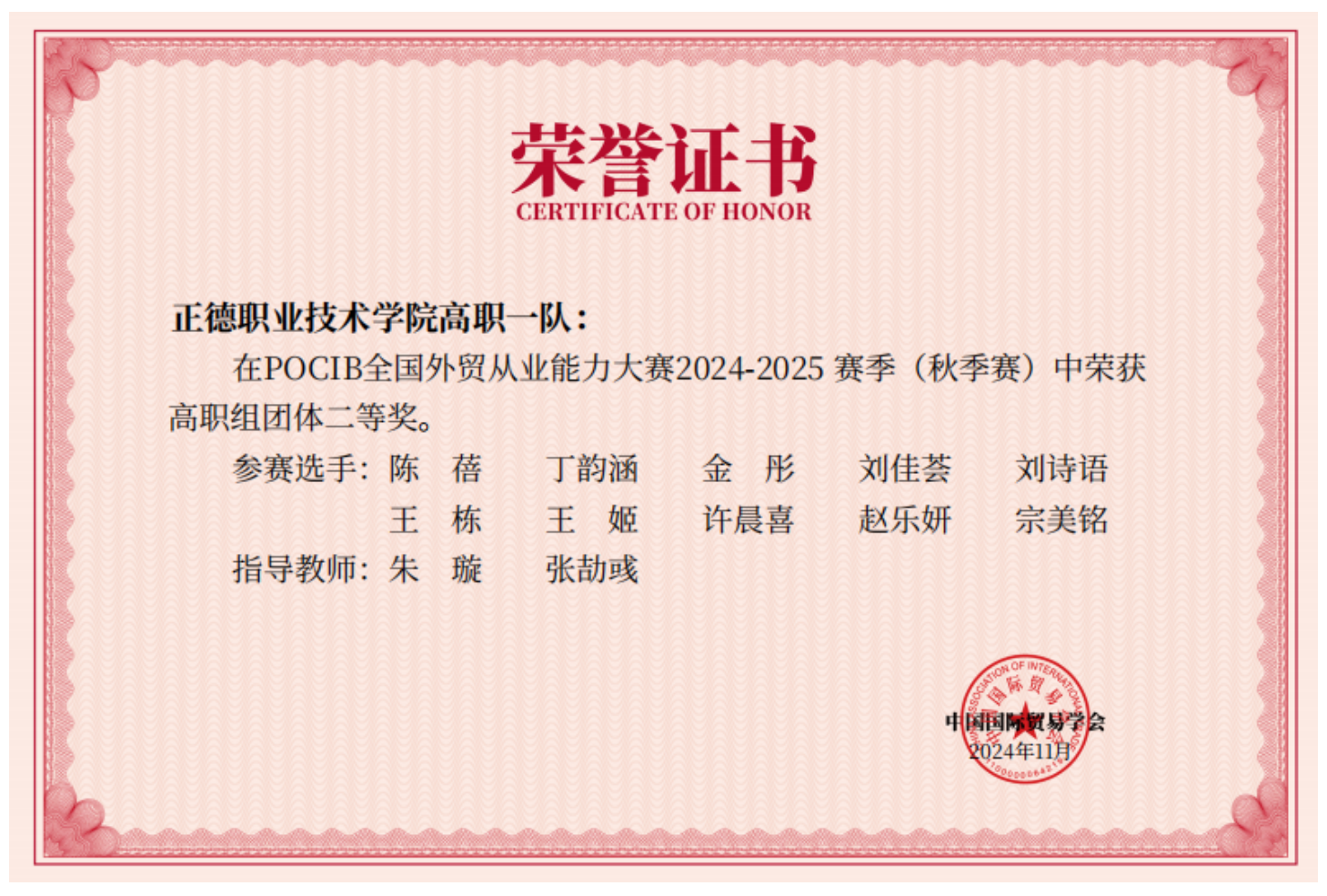 专业始终坚持“岗、课、赛、证”四位一体育人模式,顺应外贸行业发展趋势,多渠道、多层次、多形式锤炼岗位核心技能。近年来在各类专业竞赛中取得佳绩。