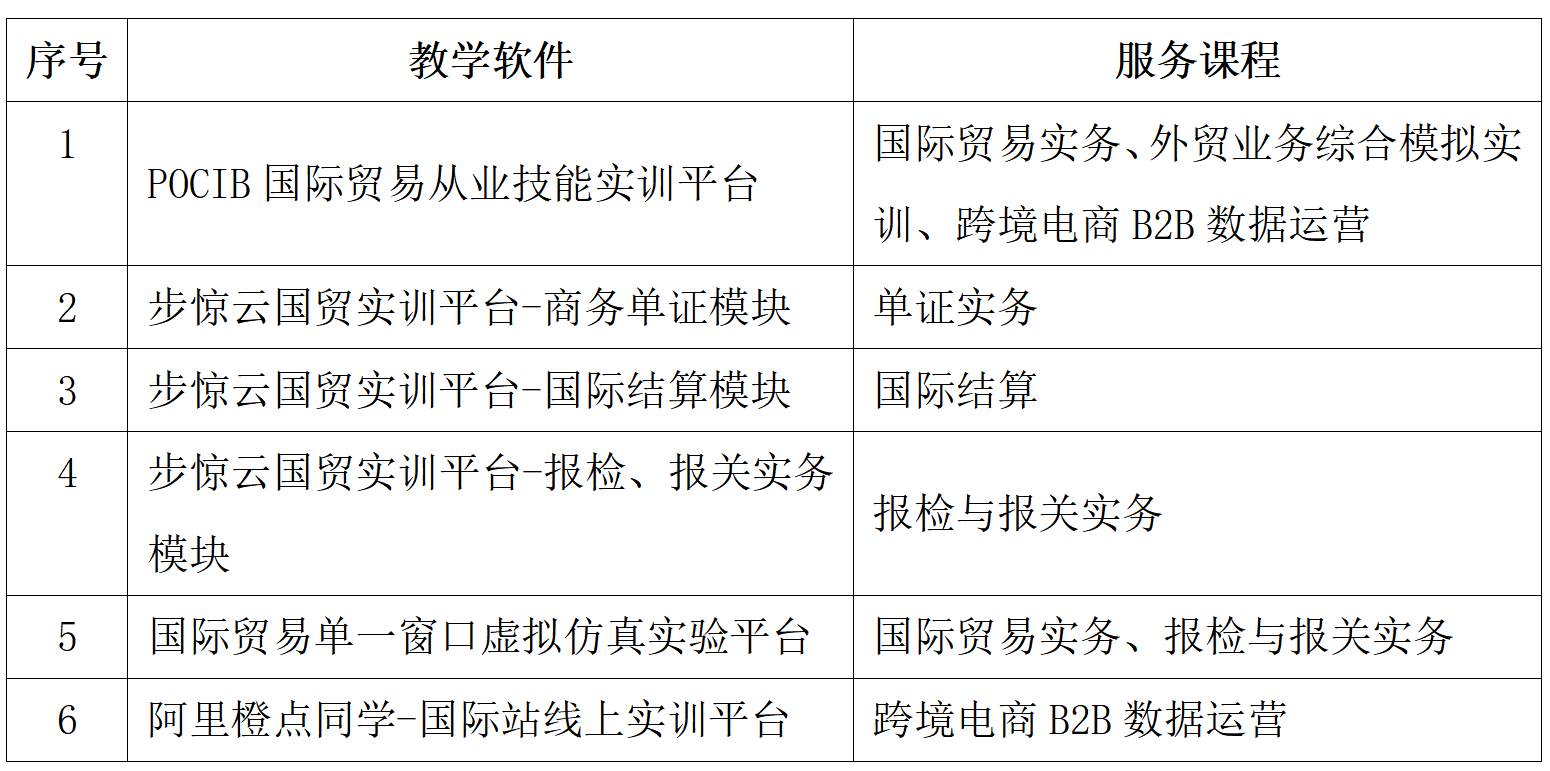校内建设了财经综合实训中心、国际贸易理实一体化教室、国际商务谈判实训室等实训条件,精准匹配各类模拟教学软件,搭建较为完善的实践教学体系,既满足了项目化教学的需求,也为专业竞赛提供了充分条件。