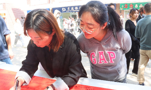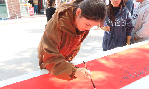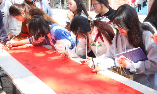 活动期间,学院领导、教师、学生路过时纷纷驻足,用手中的笔书写出心中最诚挚的祝福。学院党委书记孙雷书记笔走龙蛇,写下“祝祖国越来越好”的真挚期盼,赵凯雷副院长力透纸背,写出“预祝二十大圆满成功”的热切期待。