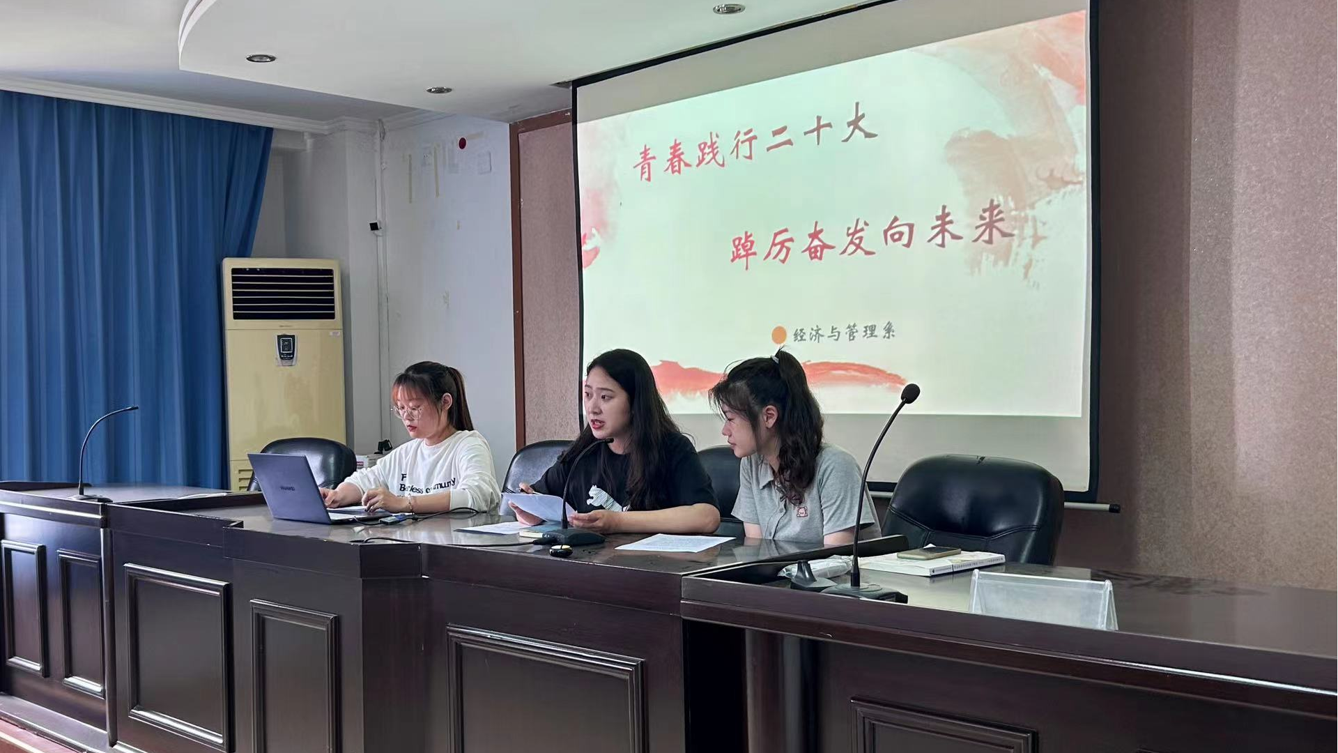为深入学习贯彻习近平新时代中国特色社会主义思想和党的二十大精神,认真学习领会习近平总书记重要讲话精神,带动全团、引领青年坚定捍卫“两个确立”、坚决做到“两个维护”,为强国建设、民族复兴作出青春贡献,4月21日,经管系开展“青春践行二十大,踔厉奋发向未来”主题团日活动。