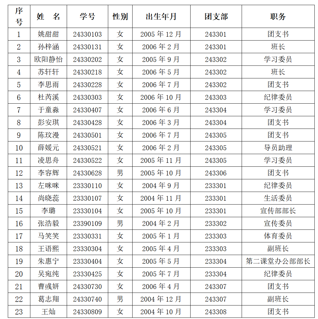 经团支部推优、团总支审核,研究决定姚甜甜等42位同志为入党积极分子。公示时间为:2025年3月7日—3月13日。对公示对象如有异议,请于公示期间与经济与管理系团总支联系。联系电话:025-52111905。