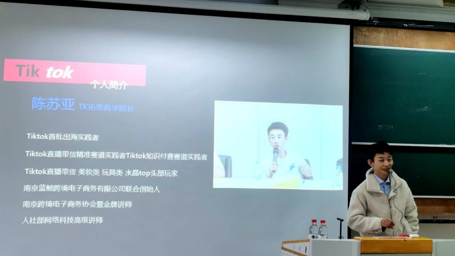 讲座中,陈老师向学生们分享了自己的创业经历,从短视频运营制作讲到电商直播的开展,介绍了TikTok运营逻辑和主流变现模式,介绍了选品的思路和策略。通过专题讲座,学生对电商直播运营的知识和技能也有了进一步认知,提升了专业学习的热情。