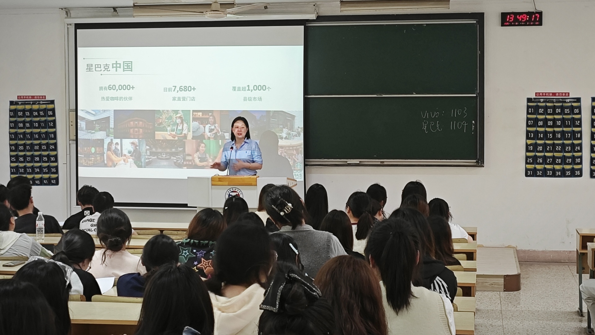 在宣讲会上,星巴克代表以“不止一杯咖啡”为主题,生动阐释了其在中国市场的稳健发展、独特的“伙伴文化”以及以尊重和联结为核心的企业价值观。重点介绍了星巴克为员工量身打造的全方位人才培养体系和清晰多元的职业发展路径——从门店一线伙伴到咖啡大师、店经理,乃至区域管理岗位的广阔空间。宣讲特别分享了面向我校学生的实习项目和应届生招聘计划,为学子们提供了宝贵的实践与就业机会。