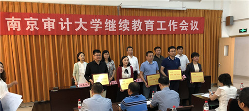 我院荣获南京审计大学2018年度自学考试专接本工作先进集体称号 发布日期: 2019-06-03 2019年5月30日和31日,经济与管理系苏敏与教务处司慧两位老师参加了2018年度南京审计大学专接本继续教育的年会。本次年会上,南京审计大学继续教育学院的裴文英书记总结了2018年度的继续教育工作,对对接院校的工作给予了肯定,也剖析了工作中存在的不足,希望各对接院校在下一年度的工作中将存在的不足及时改进。会议表彰了一批在工作中表现突出的院校,我院获得了南京审计大学2018年度自学考试“专接本”先进集体的光荣称号。