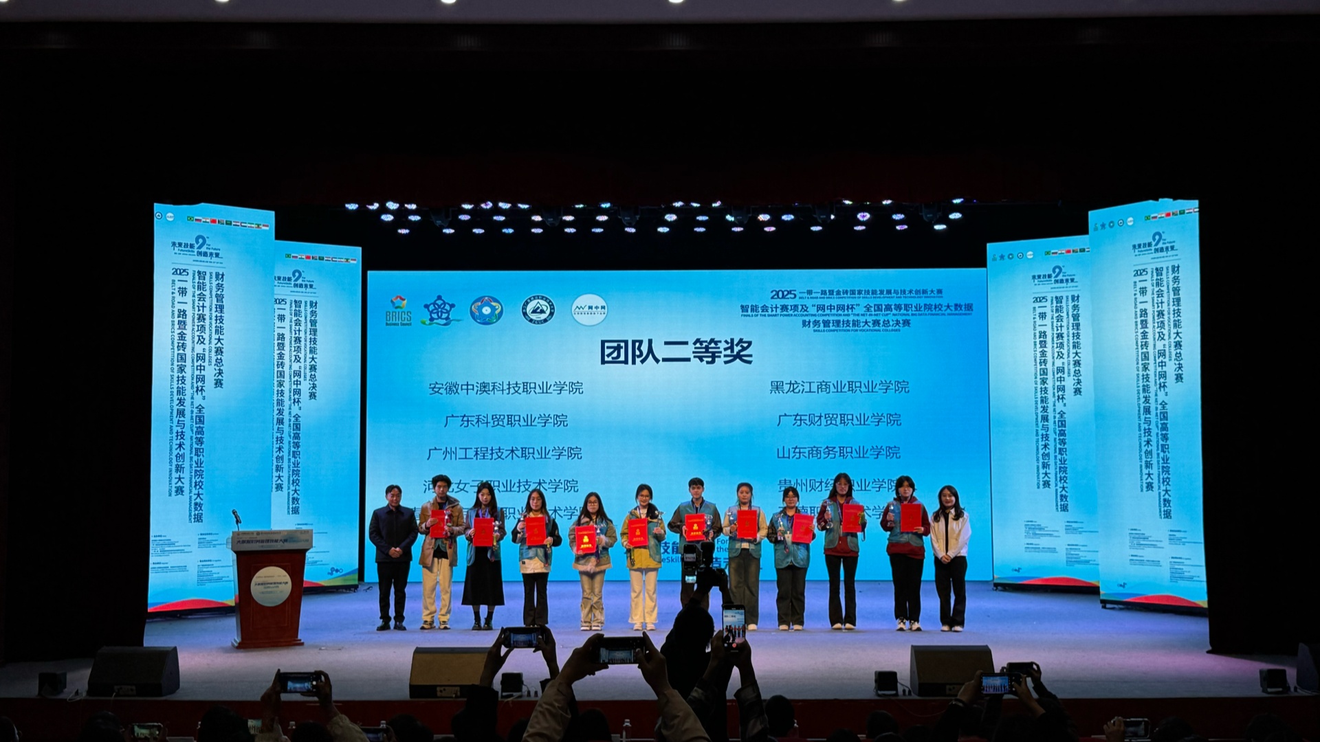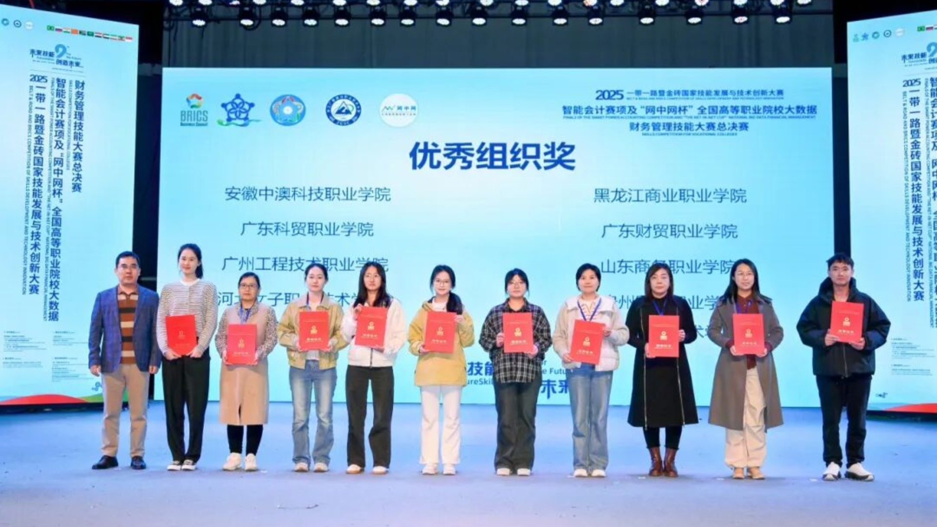 近期,我院经济与管理系在2025年一带一路暨金砖国家技能发展与技术创新大赛智能会计赛项全国总决赛中传来喜讯,由李家唸、王黎娜老师指导,吴雨轩、周言之、彭安琪、于童淼组成的代表队,凭借扎实的专业知识和默契的团队合作,荣获全国总决赛团队二等奖。同时,学院荣获“优秀组织奖”,这充分展示了学校在大数据财务管理、智能会计领域人才培养方面的实力。