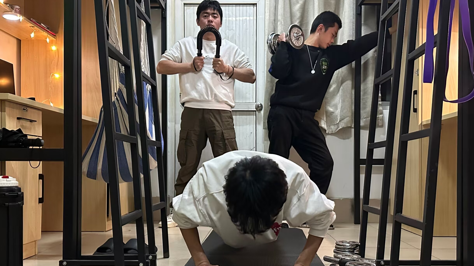 另外,在“寝室时光胶囊拍摄大赛”环节,各位学生也是八仙过海、各显神通,拿出看家本领,一展风采。既有深情的吉他弹唱,又有热血沸腾的健身实况,还有搞怪新颖的太极拳展示等等,所有学生活力四射,用自己的方式展示着寝室独有的风格。