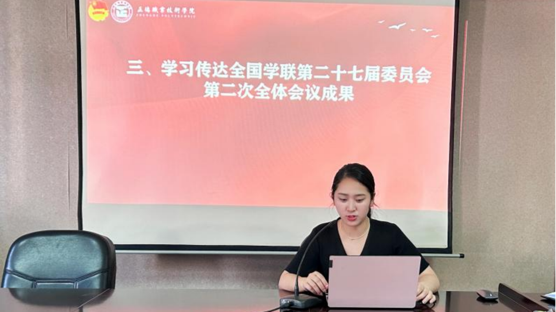 接着,团总支书记倪冰慧作总结发言。她首先感谢了同学们的辛苦付出,对学生会近期的工作成果给予了肯定,并激励同学们要继续强化责任意识,起好带头作用,促进自我提升,加强学生会内部建设,打造系部品牌,为我系发展贡献力量。最后,她带领全体学生干部以《在全国学联第二十七届委员会第二次全体会议上的工作报告》等为学习内容,就会议工作报告和会议通过的决议进行学习解读,深入领悟会议精神,强化理论水平,把握时代主题,牢记服务宗旨。